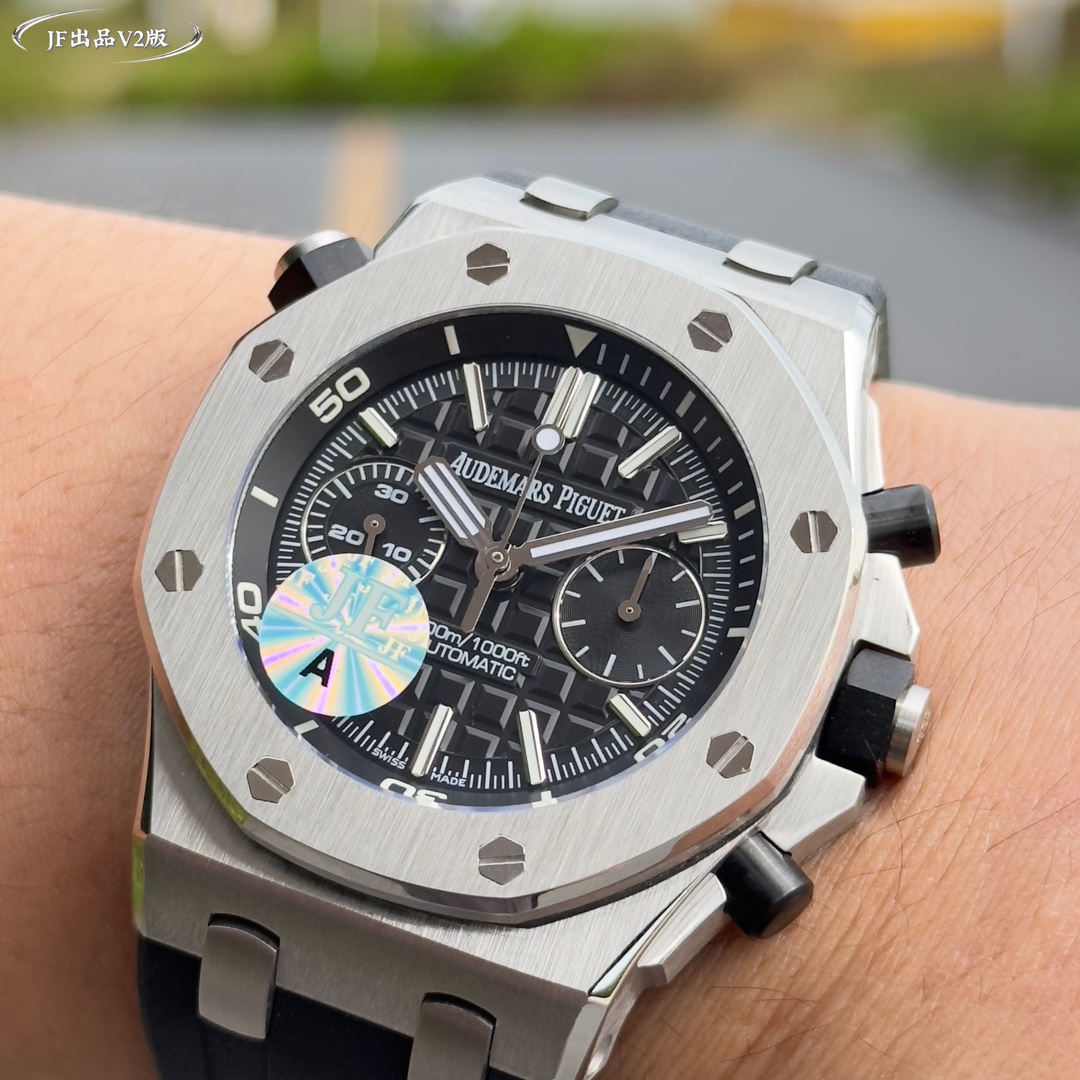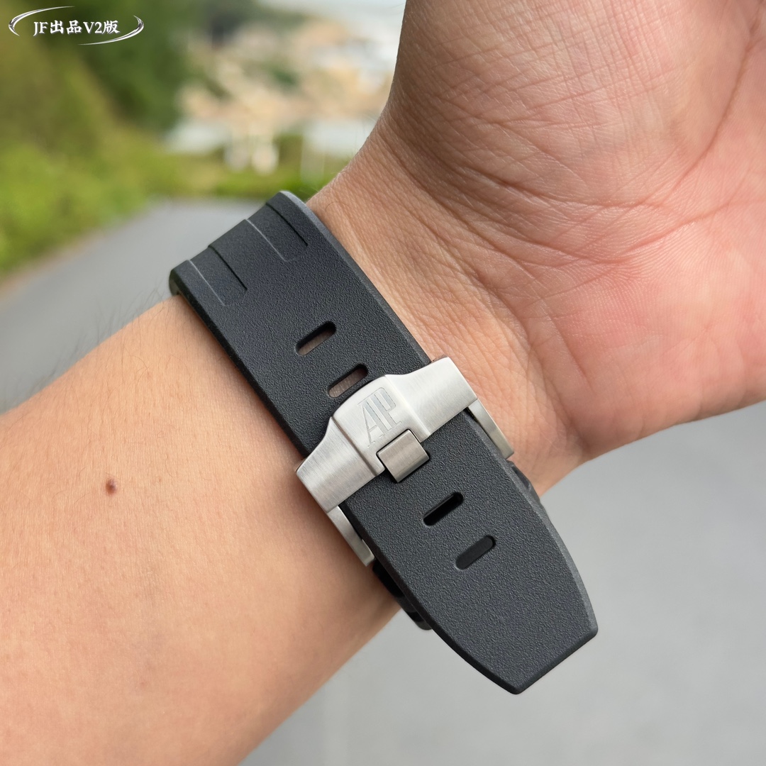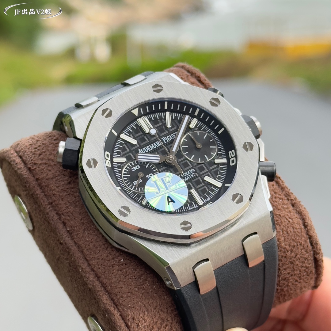 Live head fruit, the inner shadow can be adjusted in both directions, not the common market version, Audemars Piguet Royal Oak series fruit Model: 26703 Running Second Automatic Mechanical men's watch, equipped with the original cal.3124 movement, diameter: 42mm, super luminous The case material is made of 316L stainless steel, which is forged into a 42mm diameter through CNC one-time forming. After multiple grinding and polishing processes of the brushing process, the case is flawless, and even the screws are consistently restored 2. The dial surface has a well-arranged checkered pattern with a strong three-dimensional effect. The thickness and length of the scale lines are consistent with those of the genuine product. The interior of the nail hour markers is filled with super luminous material. Two groups of small discs are symmetrically distributed, just like two small eyes. There are concentric magnifying rings inside the dial, and the details are handled very well. 3. The surface of the fluororubber watch strap has a very strong matte texture. It adopts imported rubber that is odorless and dust-free, only to enhance the comfort of wearing Both the front and rear Windows are made of sapphire crystal mirror glass, which also has strong mirror transparency. This wristwatch is equipped with the 3124 movement, achieving an extremely similar appearance to the genuine product, with precise and stable timekeeping