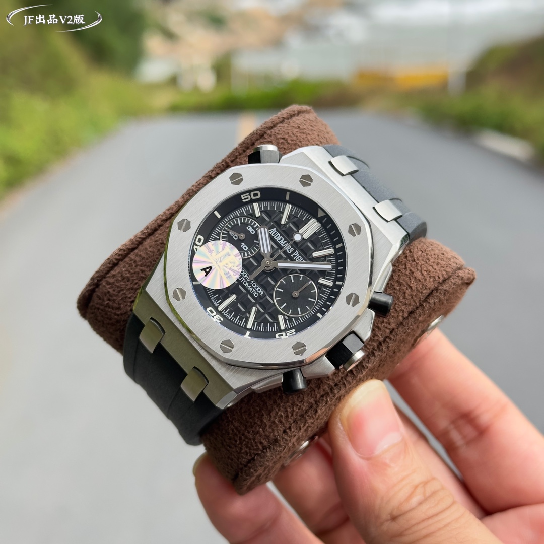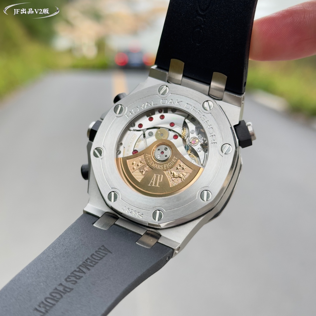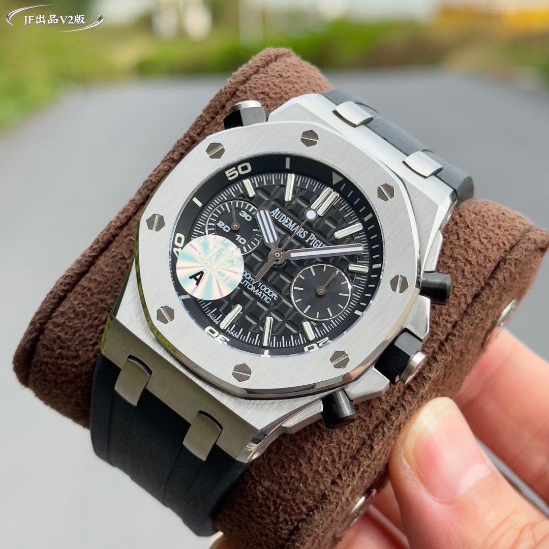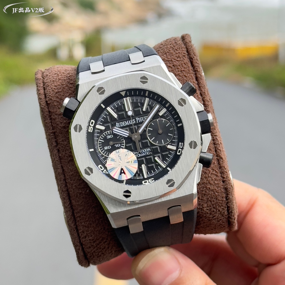Live head fruit, the inner shadow can be adjusted in both directions, not the common market version, Audemars Piguet Royal Oak series fruit Model: 26703 Running Second Automatic Mechanical men's watch, equipped with the original cal.3124 movement, diameter: 42mm, super luminous The case material is made of 316L stainless steel, which is forged into a 42mm diameter through CNC one-time forming. After multiple grinding and polishing processes of the brushing process, the case is flawless, and even the screws are consistently restored 2. The dial surface has a well-arranged checkered pattern with a strong three-dimensional effect. The thickness and length of the scale lines are consistent with those of the genuine product. The interior of the nail hour markers is filled with super luminous material. Two groups of small discs are symmetrically distributed, just like two small eyes. There are concentric magnifying rings inside the dial, and the details are handled very well. 3. The surface of the fluororubber watch strap has a very strong matte texture. It adopts imported rubber that is odorless and dust-free, only to enhance the comfort of wearing Both the front and rear Windows are made of sapphire crystal mirror glass, which also has strong mirror transparency. This wristwatch is equipped with the 3124 movement, achieving an extremely similar appearance to the genuine product, with precise and stable timekeeping