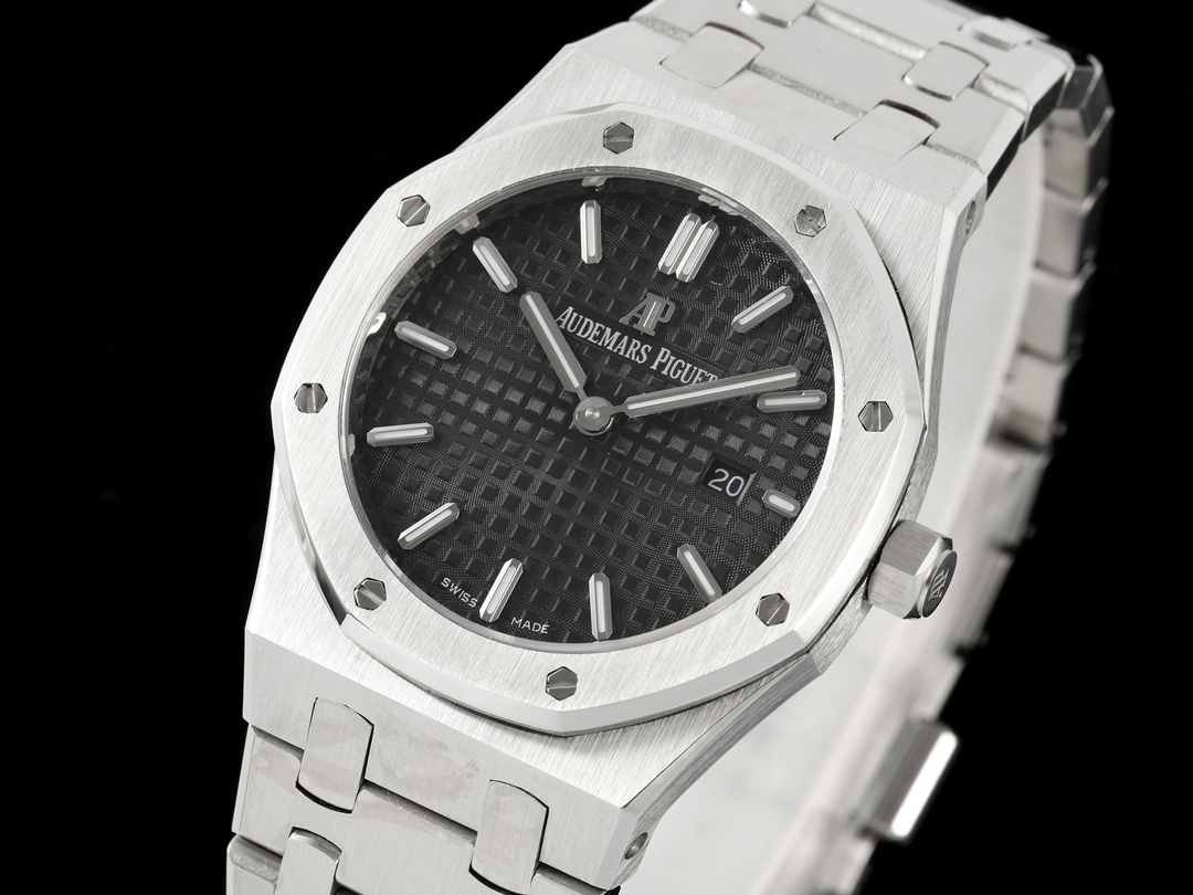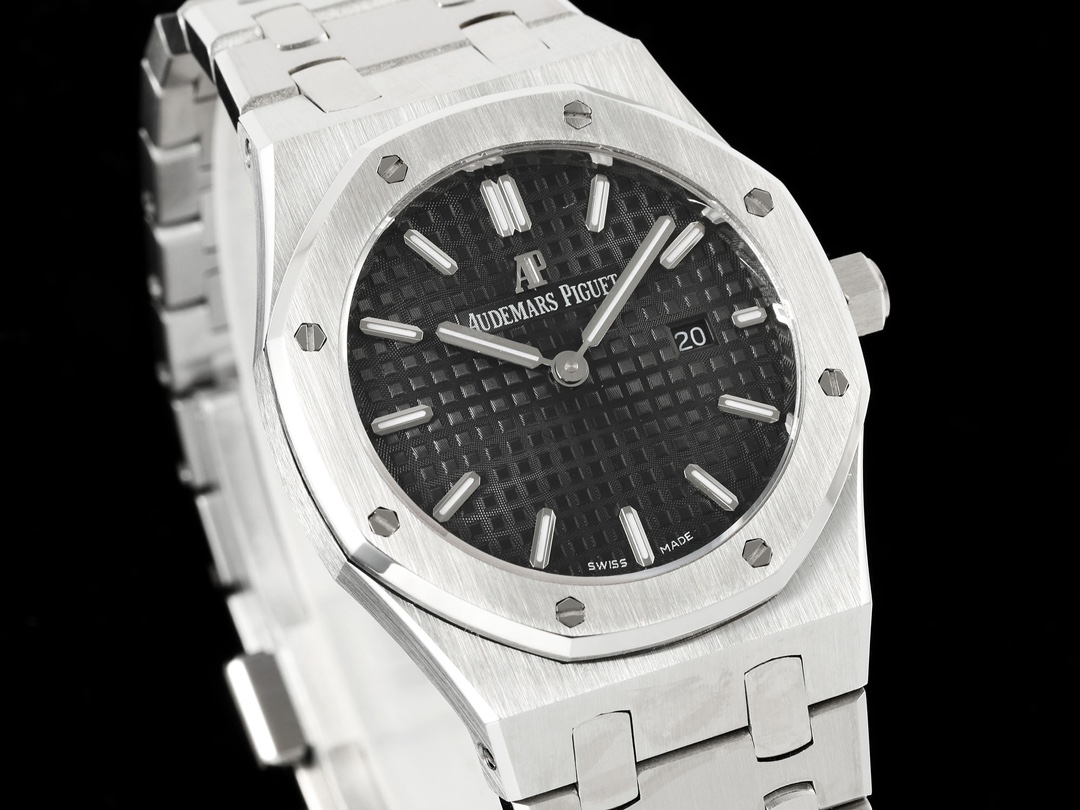 AUDEMARS PIGUET Royal Oak Series 67651OR Ladies' Quartz Watch ~ Shining debut! Goddess versatile style, sparkling and charming! The genuine product purchased through the APP is disassembled and mold-made. The entire process is CNC polished, and the pattern is checked and adjusted multiple times, with distinct edges and corners. The case diameter is 33MM. The multi-faceted bezel precisely fits the case. The bezel is fixed to the case with hexagonal screws (the bezel opening is set with exquisite Swarovski diamonds, dazzling and brilliant). The bracelet links are exquisitely and neatly arranged. The links have undergone hundreds of meticulous polishing processes, presenting a perfect texture. The folding clasp is easy to open and close and convenient to wear. The lugs of the watch are curved, which can ensure a better fit between the watch and the wrist. The dial is engraved with the "Grande Tapisserie" large checkered pattern decoration, paired with fluorescent three-dimensional hour markers and Royal oak hands. The wide hands and hour markers make reading the time simple and clear. The date display window at the three o 'clock position is shown in Arabic numerals. The wristwatch has a sealed case back, on which the English name of the Royal Oak series, "Royal Oak", is engraved. It is equipped with a Swiss F04111 quartz movement inside. Accurate timekeeping! APP production, making goddesses also very royal!
