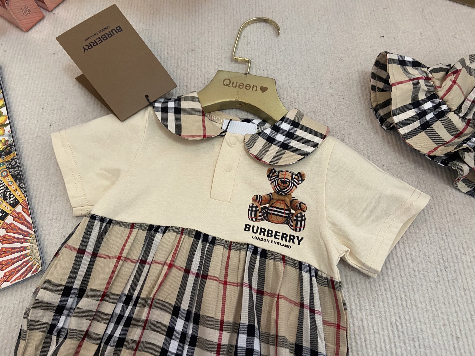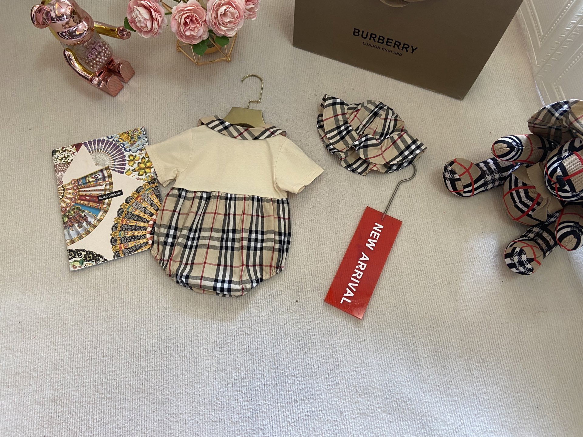 Book for one week! Burberry, high-end children's wear, boys' and girls' harem sets, short-sleeved bag bottoms + hats, pure cotton fabric, comfortable and good-looking to wear, size :66-73-80-90-100cm