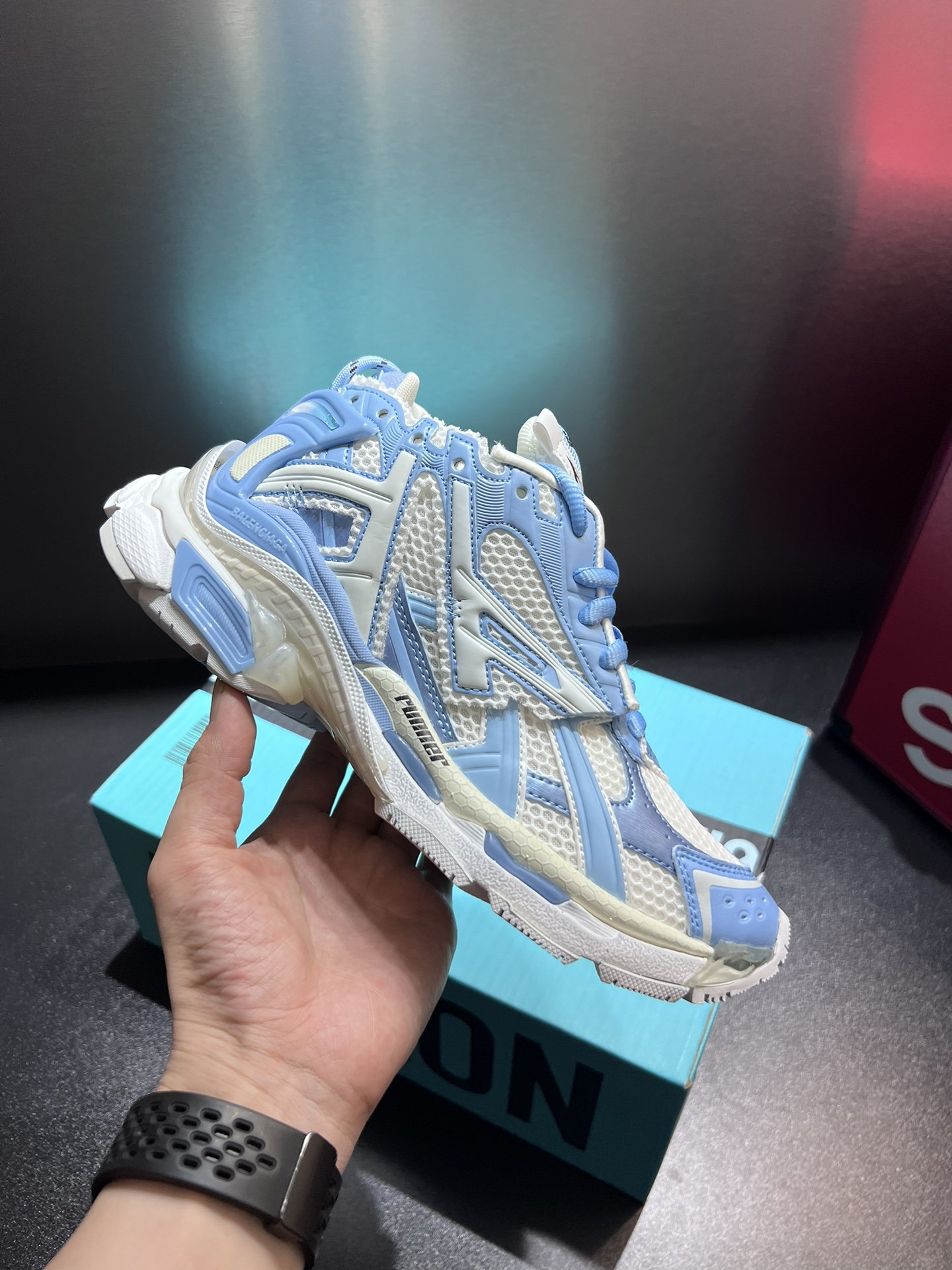 Style #5002?????? High-quality premium goods [Top Version] Balenciaga Runner sneakers Size: 35 36 37 38 39 40 41 42 43 44 45 46 Leather sports shoes without leather, made of mesh fabric, with wear and tear effect. The size is printed on the edge of the toe, the size is floating printed on the back, the runner's logo is printed on the outside, the Balenciaga brand logo is embroidered on the tongue, and the Balenciaga brand logo is printed on the back of the heel. The material is 70% polyurethane and 30% polyester fiber.
