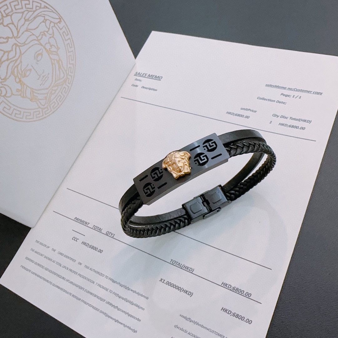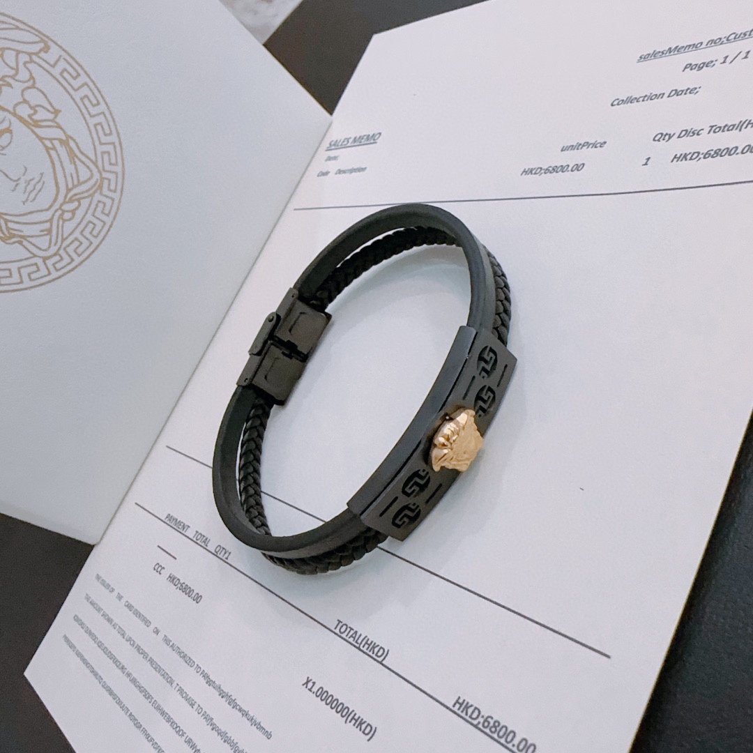 Versace signature cowhide Bracelet and bracelet are cool and stylish with a touch of unrestrained freedom, presenting a unique charm of fun, exquisitely crafted with diamonds set, absolutely high class equivalent to genuine Bracelets/Bracelet