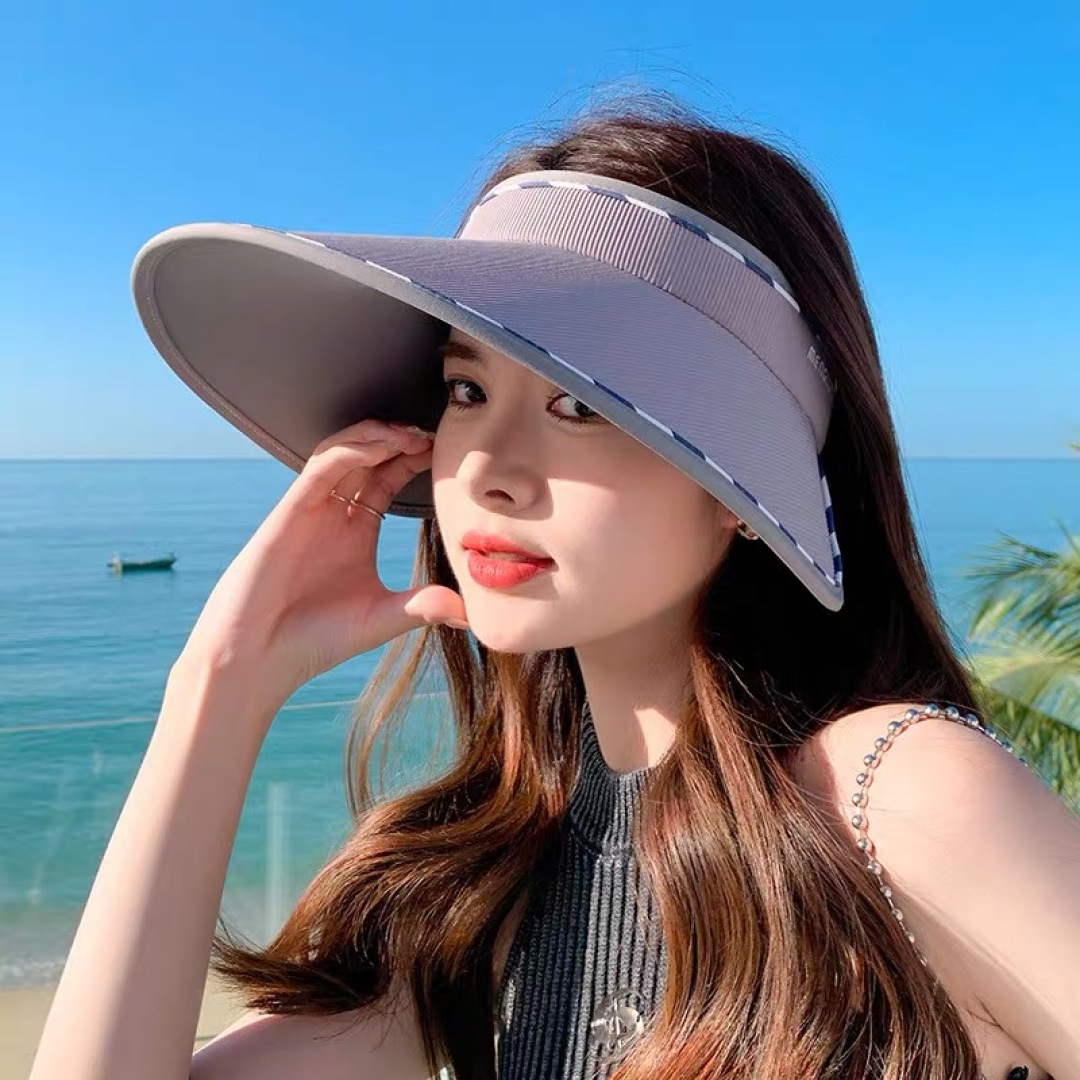 BURBERRY summer sun hat, women's UV protection, versatile sun hat, Korean version A large brim sun-blocking open-top hat for covering the face