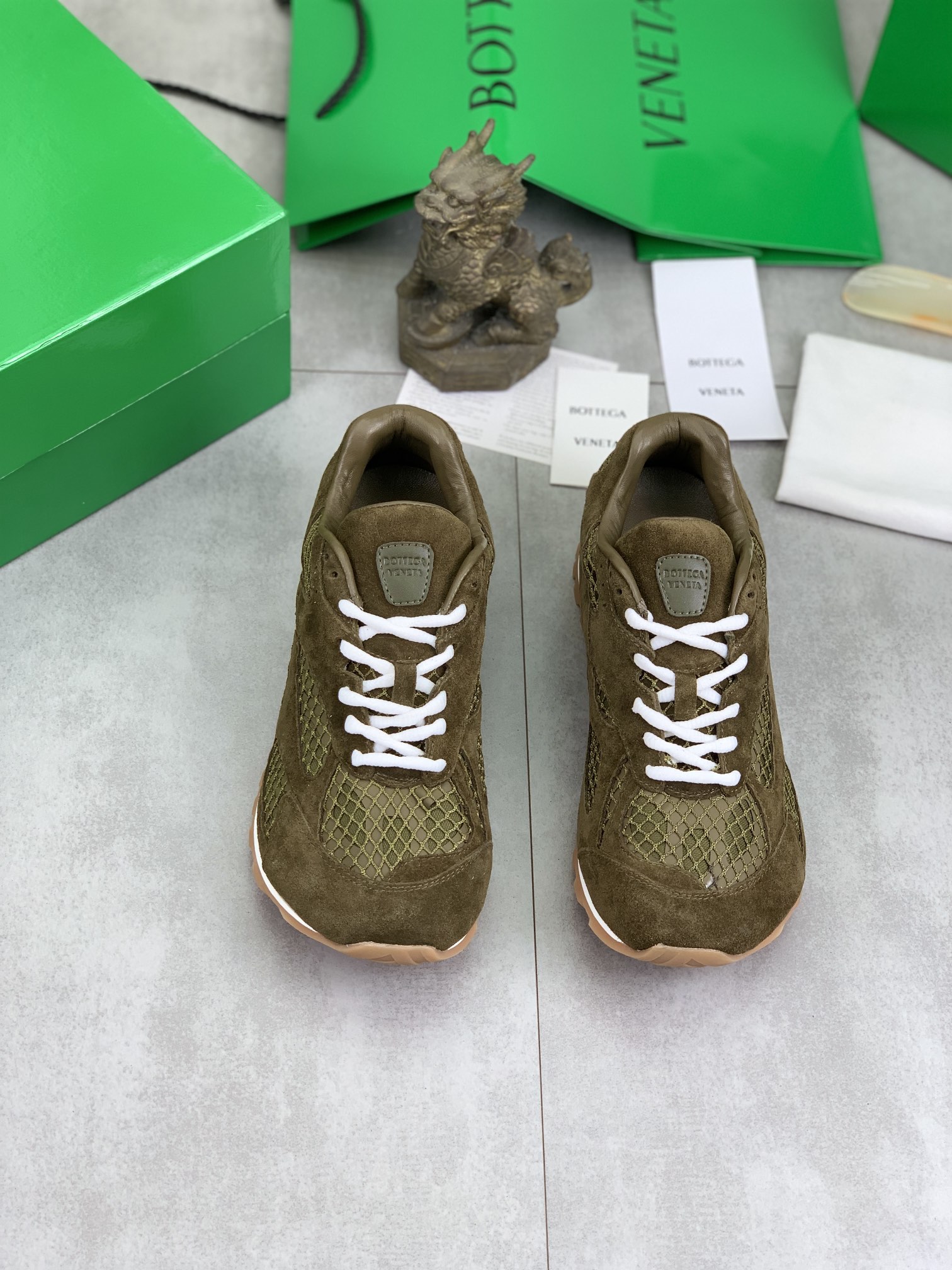 Model #3008?????? Bottega Veneta new Orbit sneakers for couples This shoe model draws inspiration from the silhouette of sports shoes from the 1990s. Its distinctive feature lies in the application of a mesh texture and the cross-covered upper made of different materials, undoubtedly paying tribute to the brand's famous "Int Recciato" pattern In addition, the sole design is also relatively slender and elegant. The outsole extends to the back of the heel, ingeniously combining sporty elements with fashion inspiration It adopts lightweight technological metal leather spliced mesh fabric Women's style 35-40 (custom-made 40) Men's style 39-45 (custom-made 45) With the original packaging