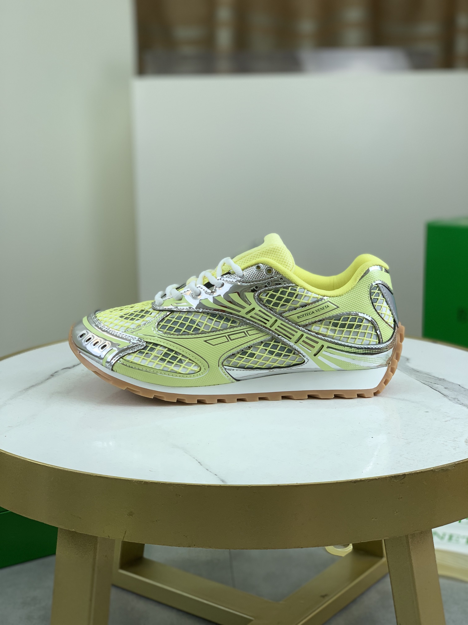 Model #3007?????? Bottega Veneta new Orbit sneakers for couples This shoe model draws inspiration from the silhouette of sports shoes from the 1990s. Its distinctive feature lies in the application of a mesh texture and the cross-covered upper made of different materials, undoubtedly paying tribute to the brand's famous "Int Recciato" pattern In addition, the sole design is also relatively slender and elegant. The outsole extends to the back of the heel, ingeniously combining sporty elements with fashion inspiration It adopts lightweight technological metal leather spliced mesh fabric Women's style 35-40 (custom-made 40) Men's style 39-45 (custom-made 45) With the original packaging