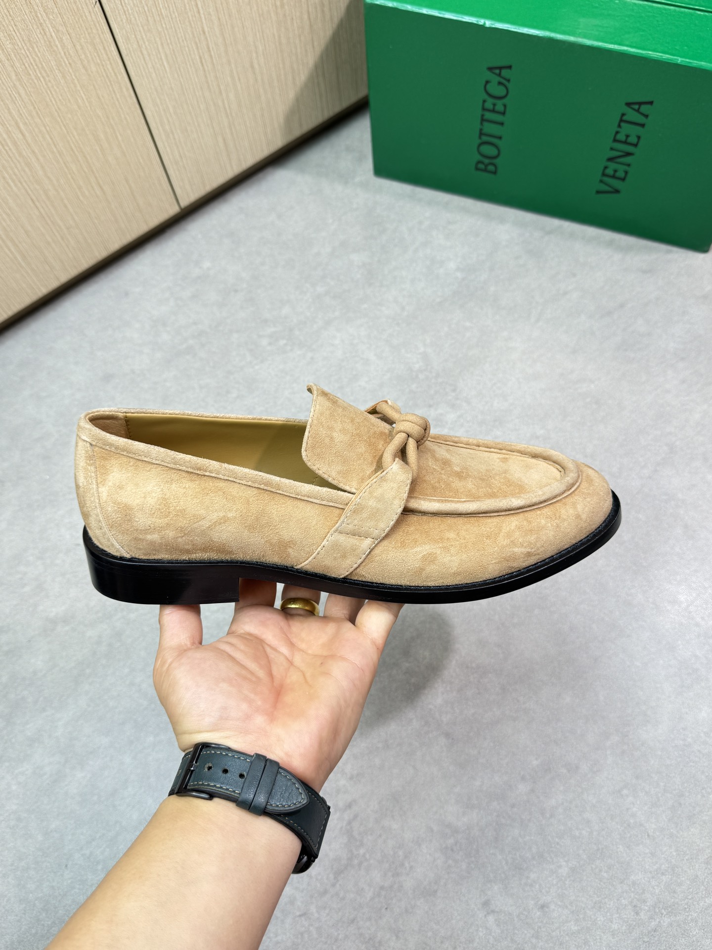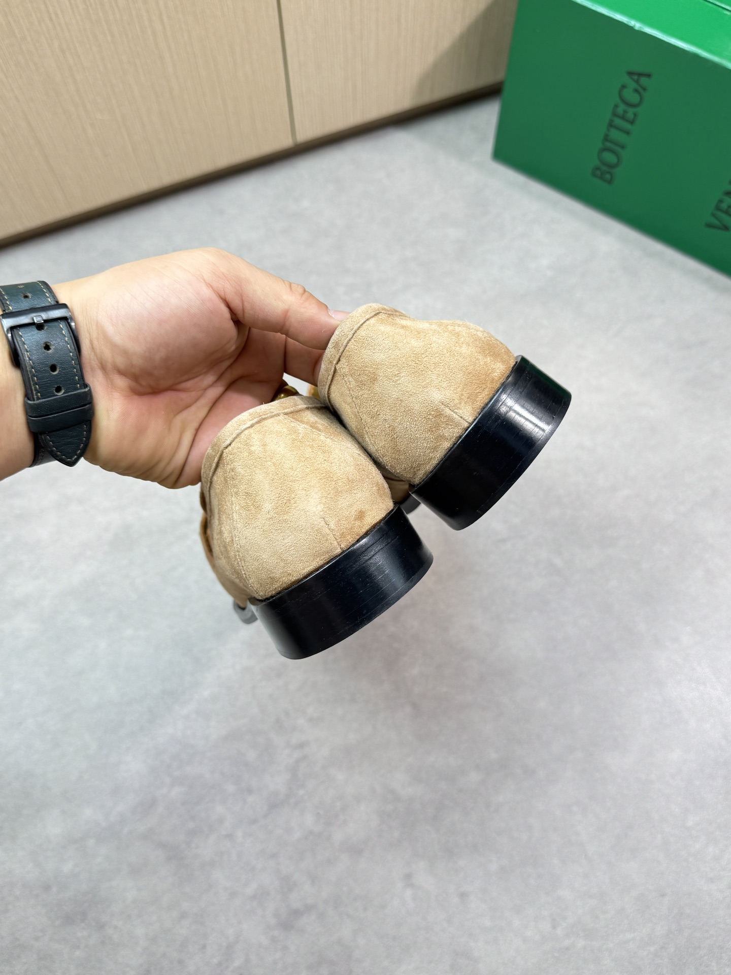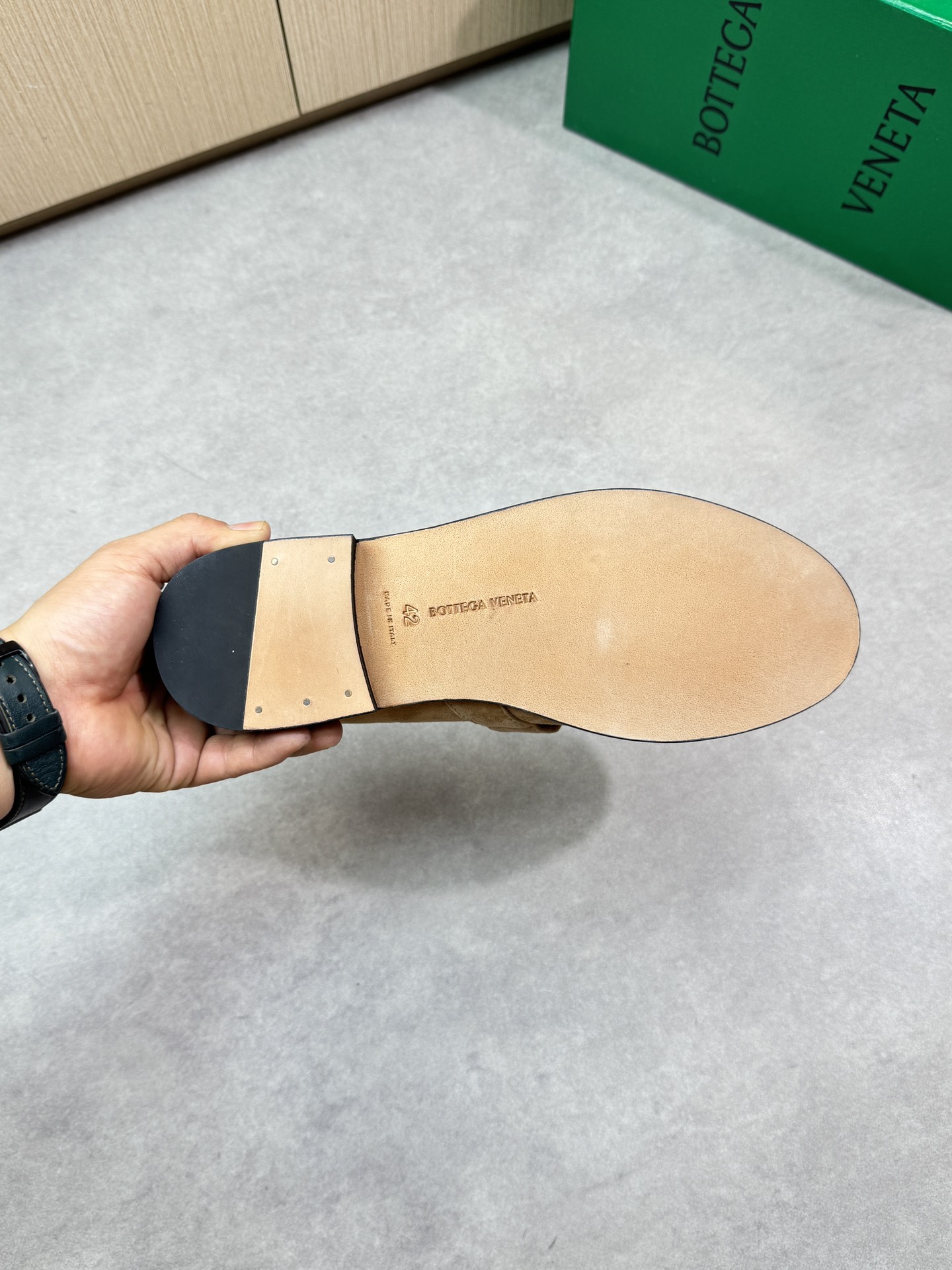 - Upper: ?? suede sheepskin, tongue brand metal fasteners, hand-stitched marking lines