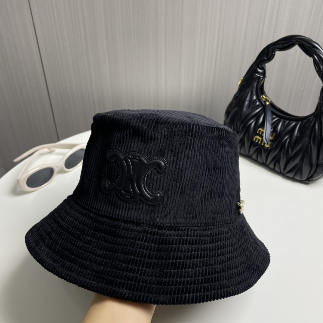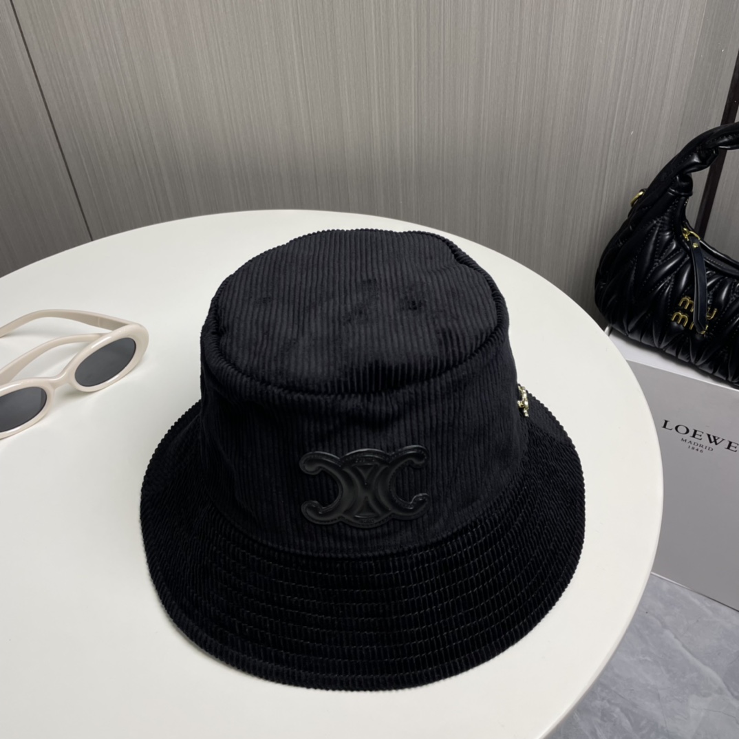 ?? CELINE high version official website latest style ?? Corduroy vertical fisherman hat for women, autumn/winter streetwear brand versatile retro trend