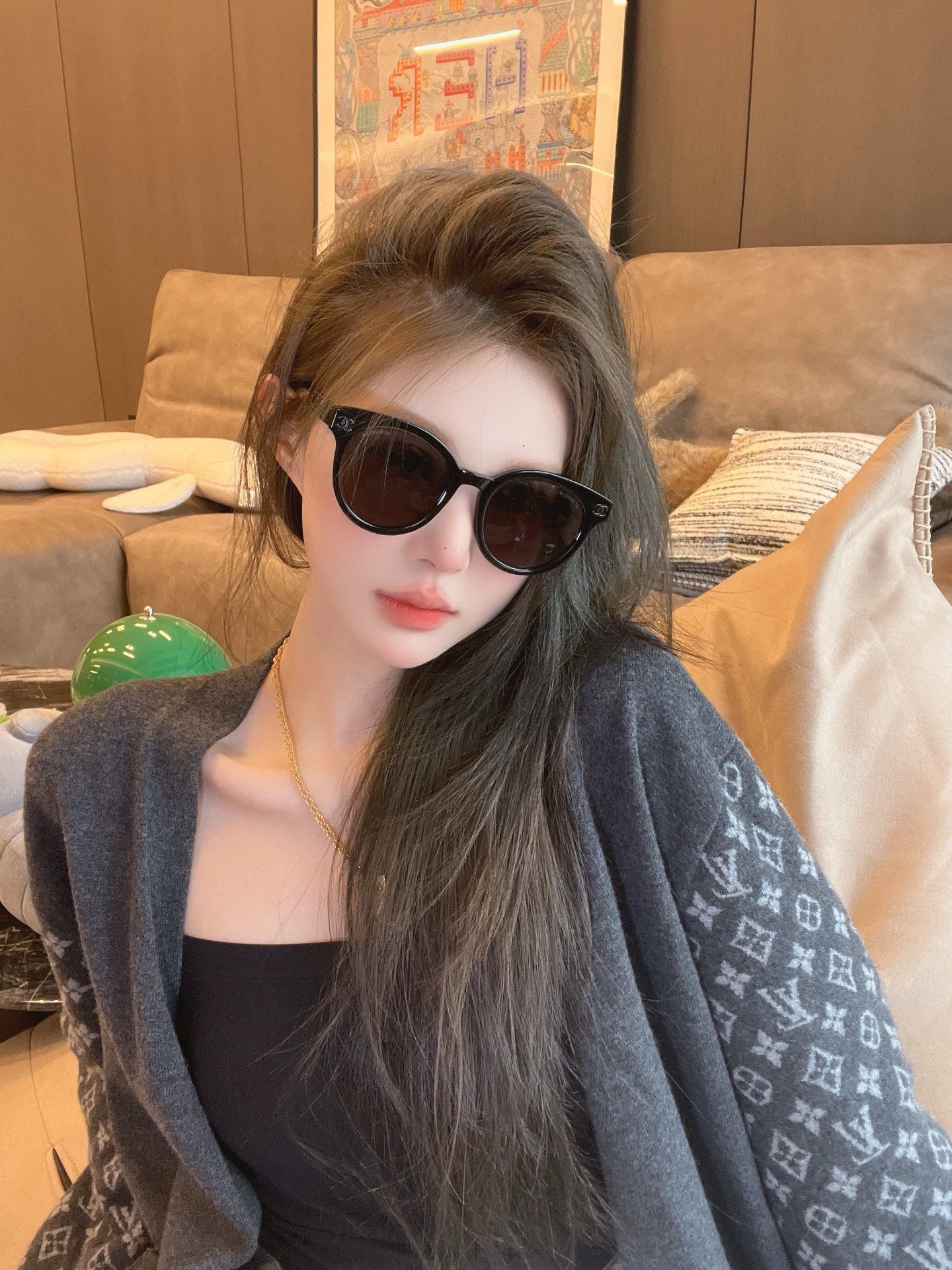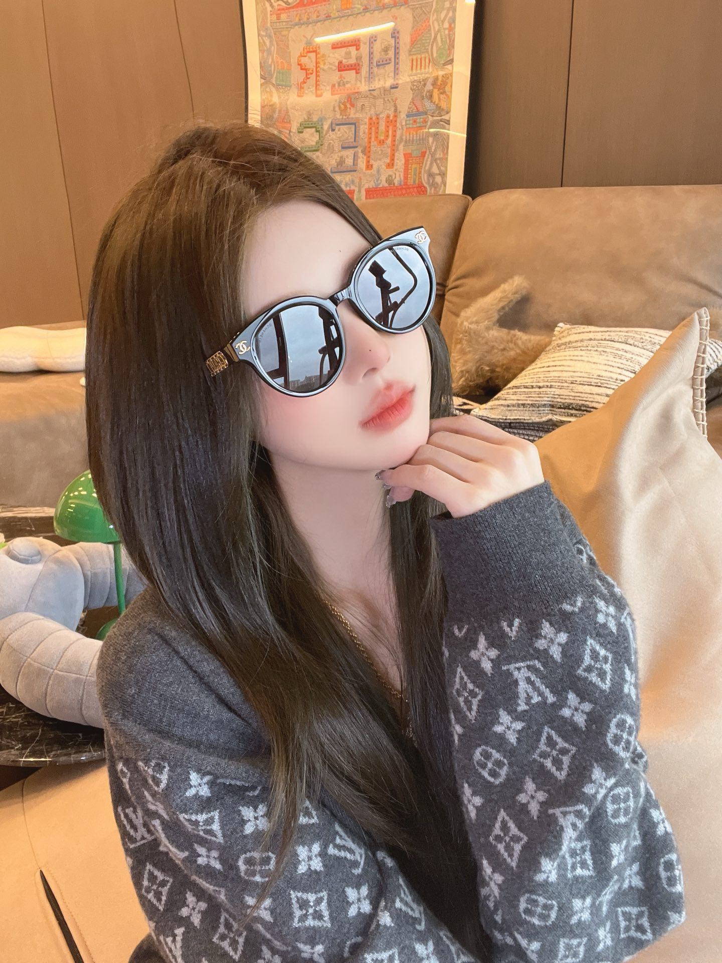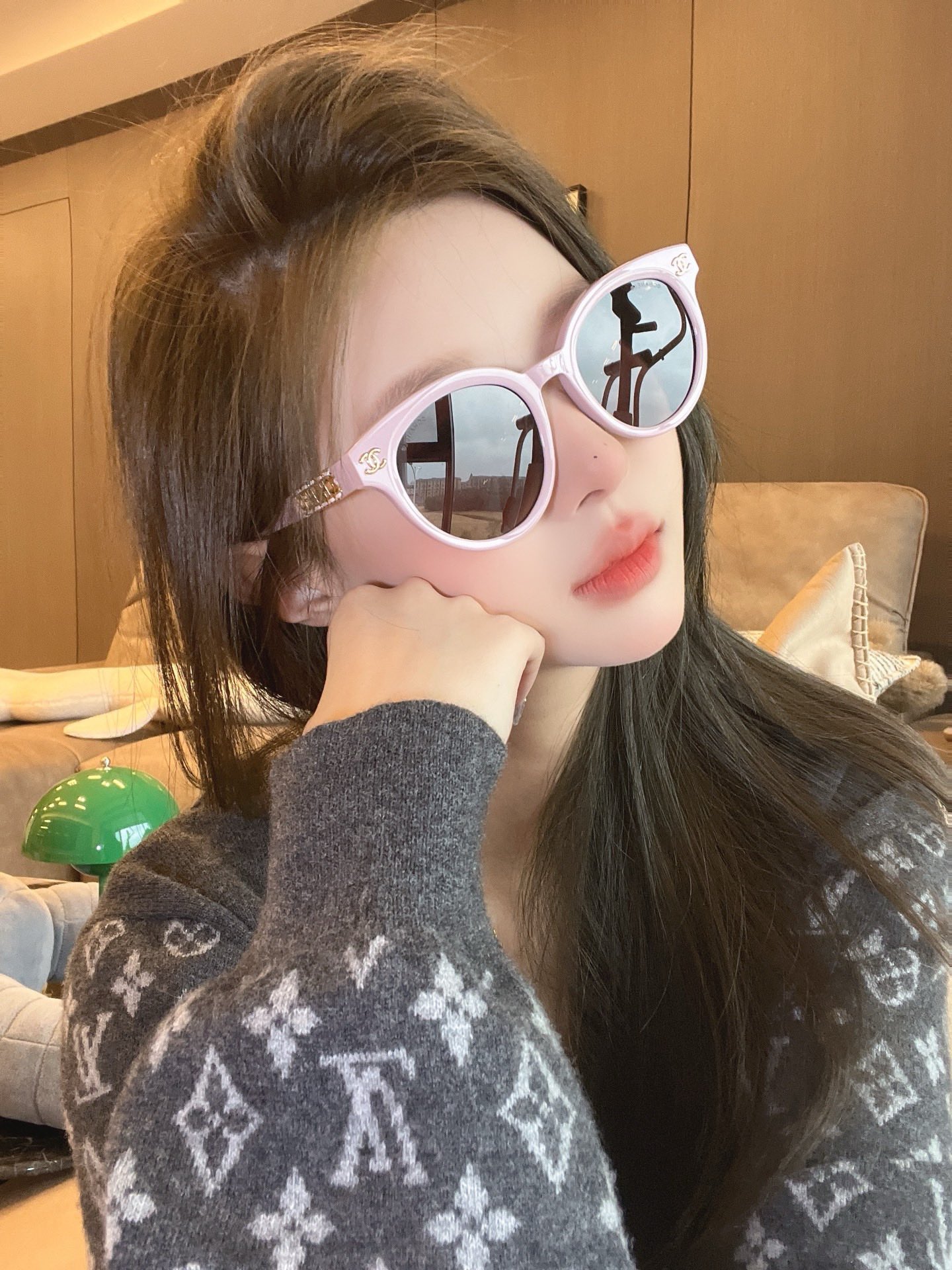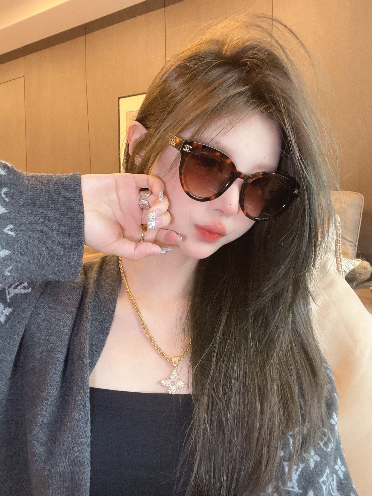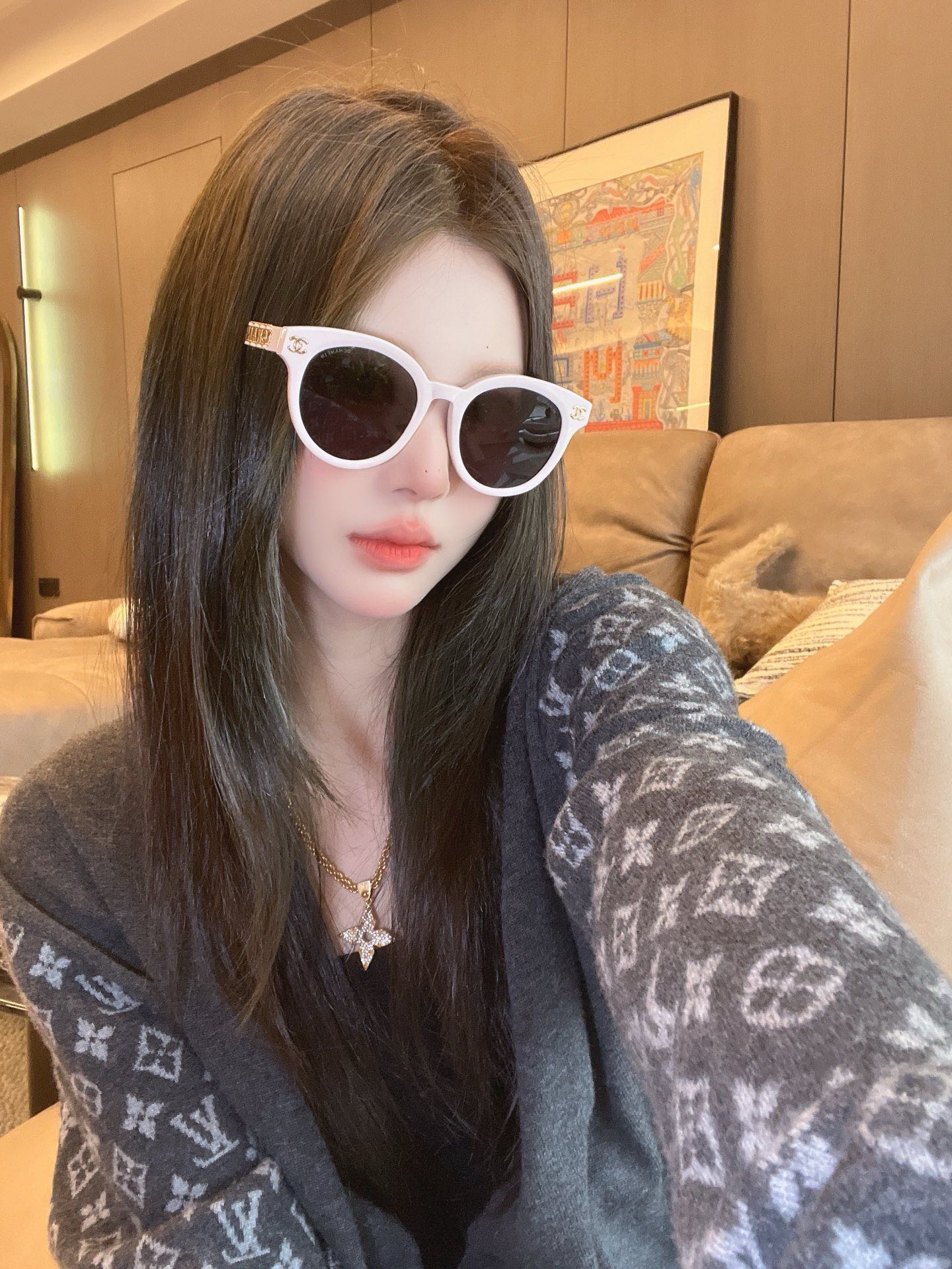 CHANE* 25ss stunning and versatile sunglasses The sheepskin chain ring is so beautiful! It's the favorite of delicate girls Mod: 6821 Size: 53 holes 22-145 Upper face picture