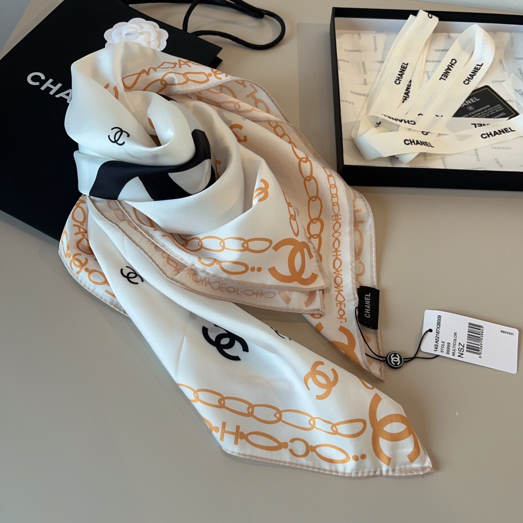 New Xiaoxiang [Classic Double C] ? ? BEAUTY FLIP OVER [Tears] The SUPREME of the PALACE ? ? Classic element pattern design style ?? BEAUTIFUL TO THE EXTREME REAL UPPER BODY VERY skin tone VERSATILE LOOK GOOD or NOT you see ? ? Size ?90x90cm 100% silk