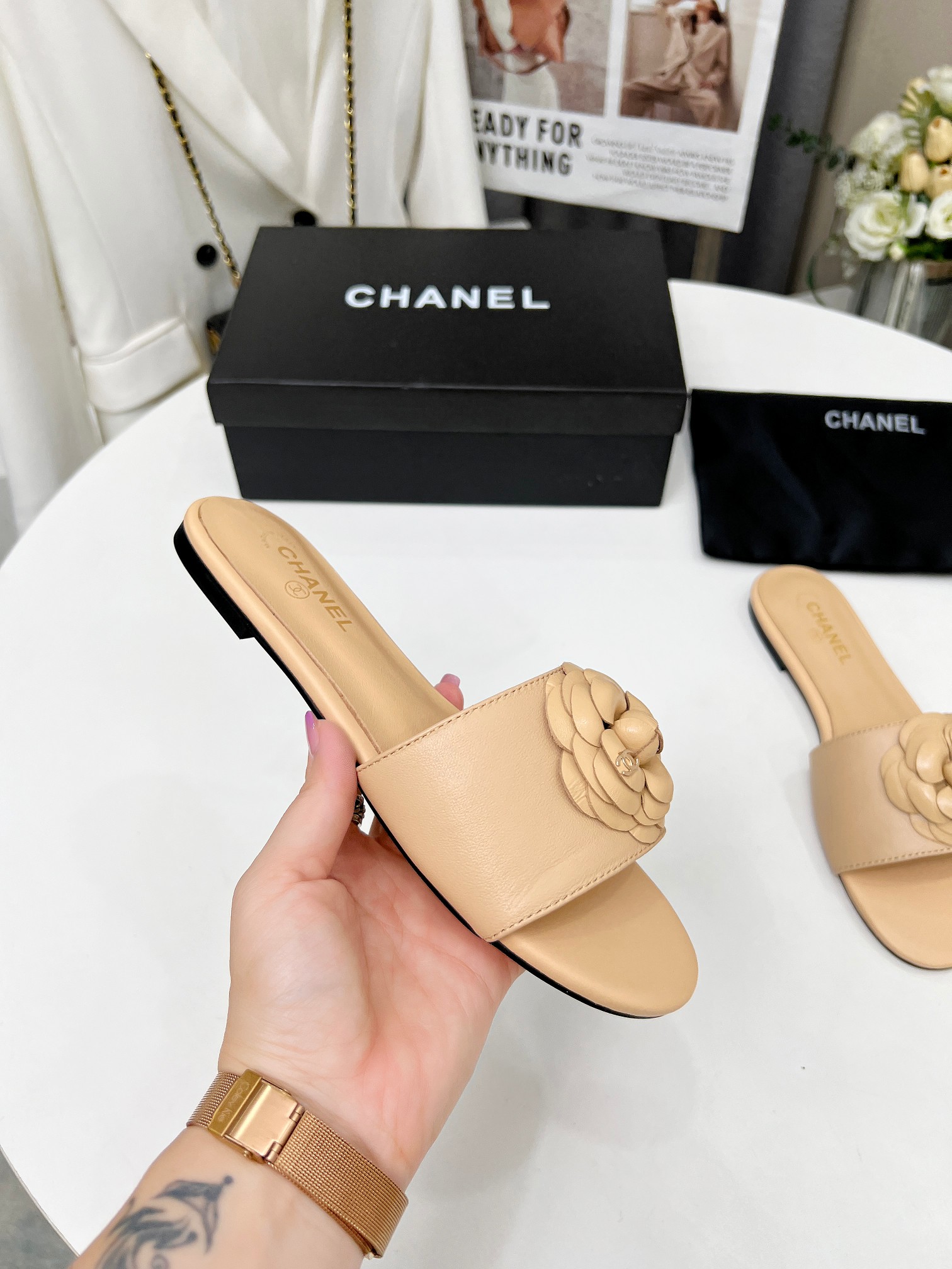 Factory price ???? Women shoes factory chanel Chanel 2024 new slippers ???? Official website counter, fabric sheepskin, lining sheepskin, foot pads goatskin, 3 colors to choose, 35-42 size, Chanel