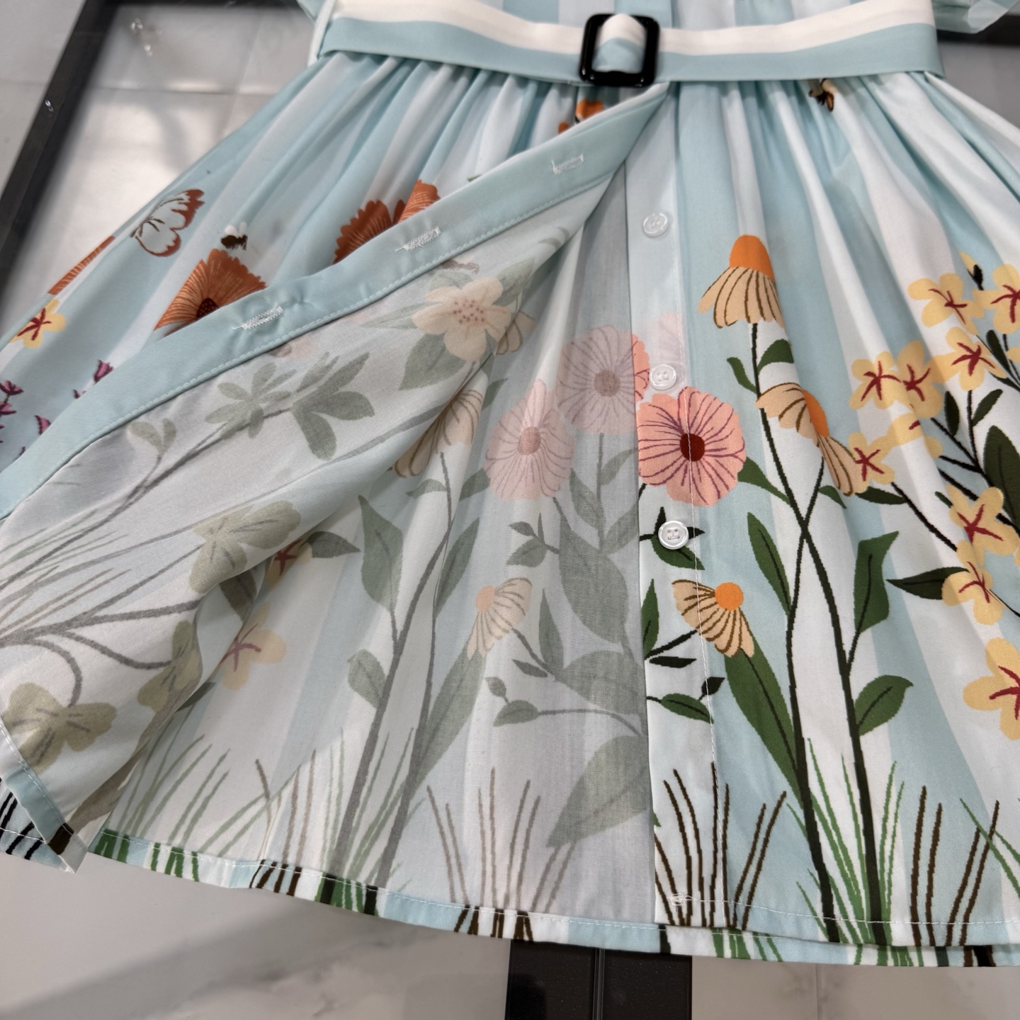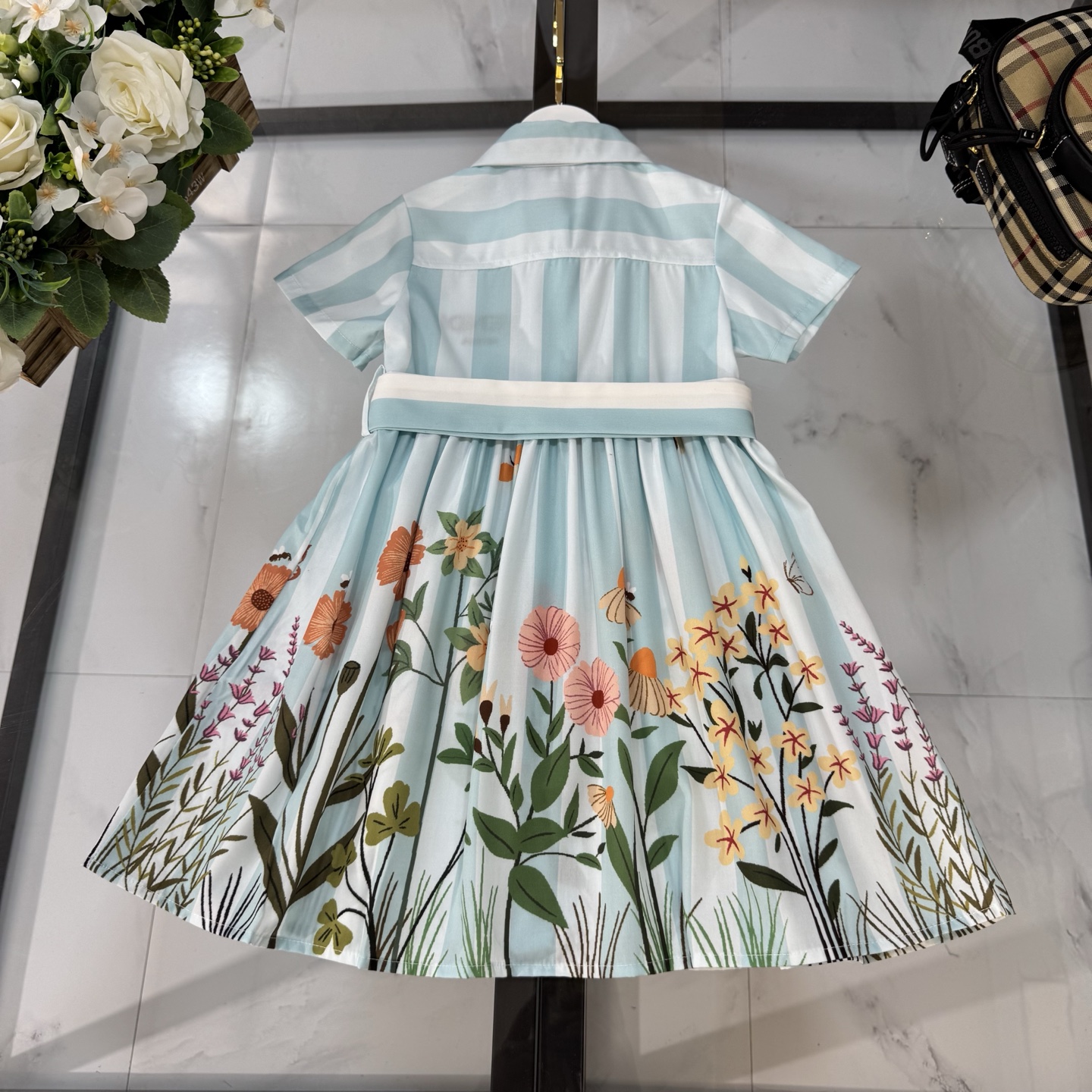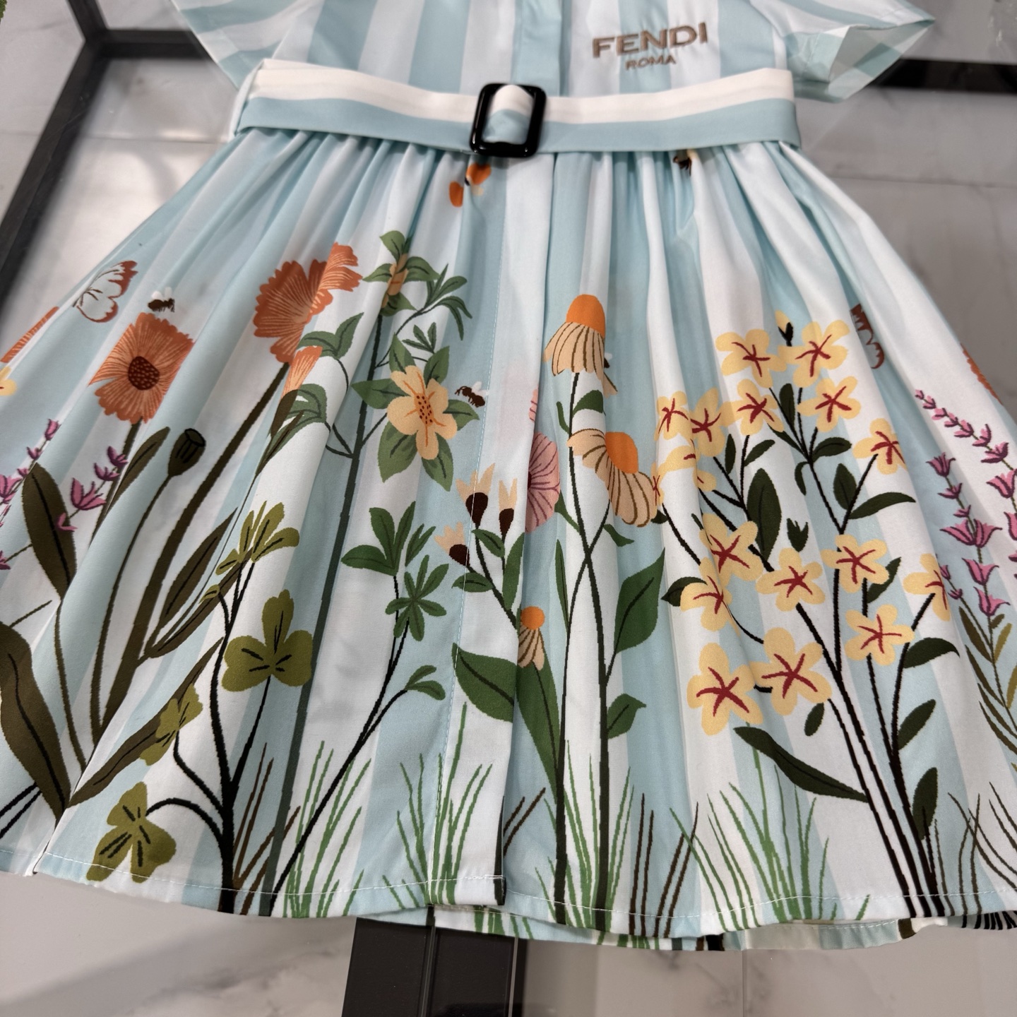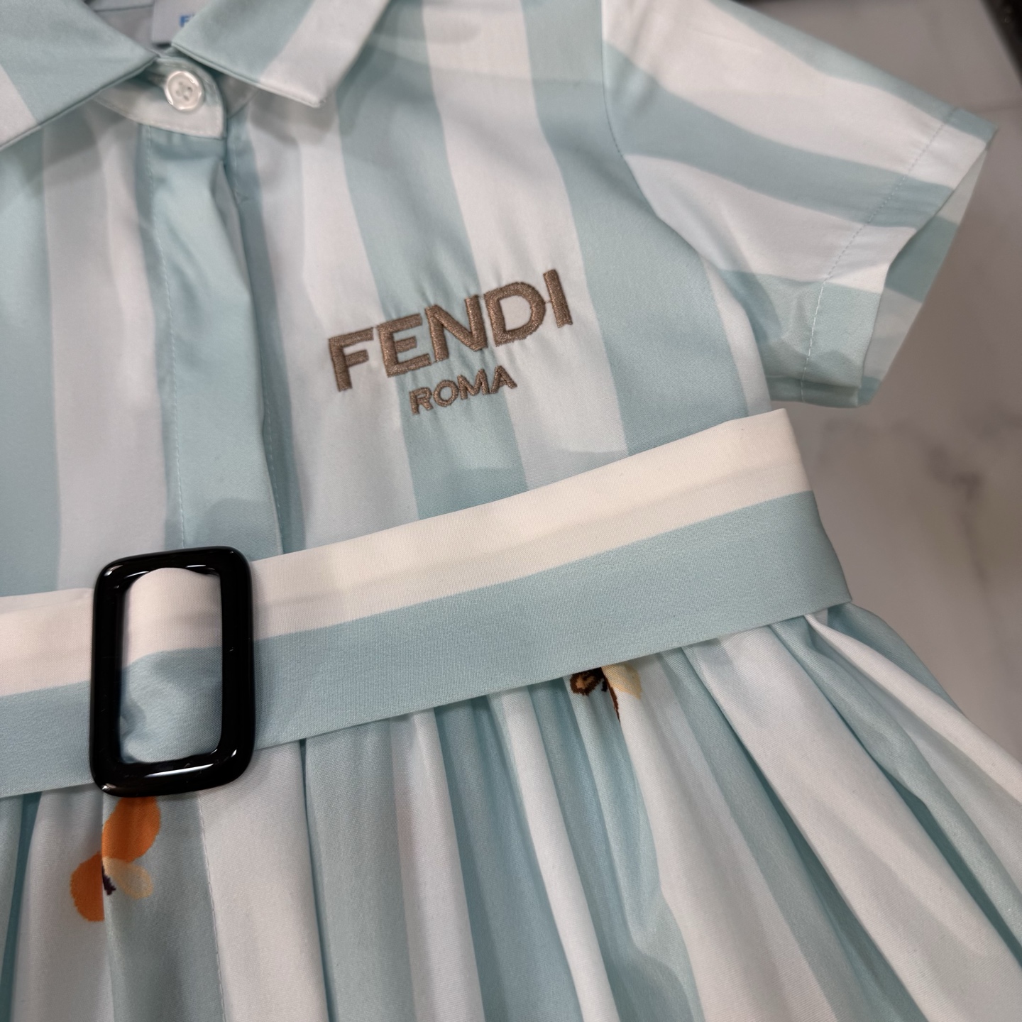 Fendi, high-end children's clothes, girls dress, single-breasted princess dress shirts, thousand goldwind flower design Belt can be closed Classic embroidered logo, upper body comfortable, good-looking, code number: 90/100/110/120/130/140/150/160 cm