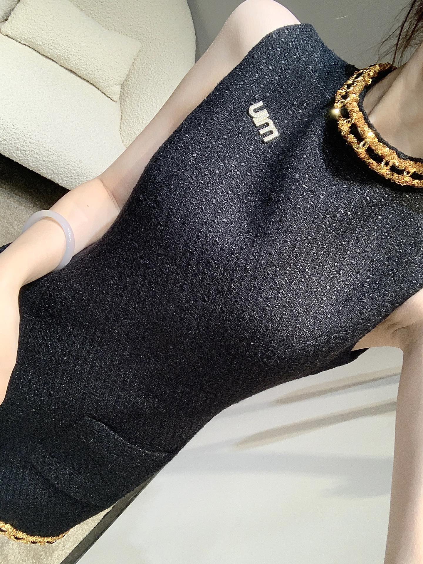 ??Miumi* 24Ss Spring/Summer new LUXURY style exquisite NOBLE heavy industry slimming tweed dress all crafted by experienced master craftsman gold sequin chain custom metal logo decoration add layers of highlights visually harmonious proportion cinching waist Slimming Classic style not picky wearing great slimming! Strongly recommend casual and elegant items. Spot sale S/M/L