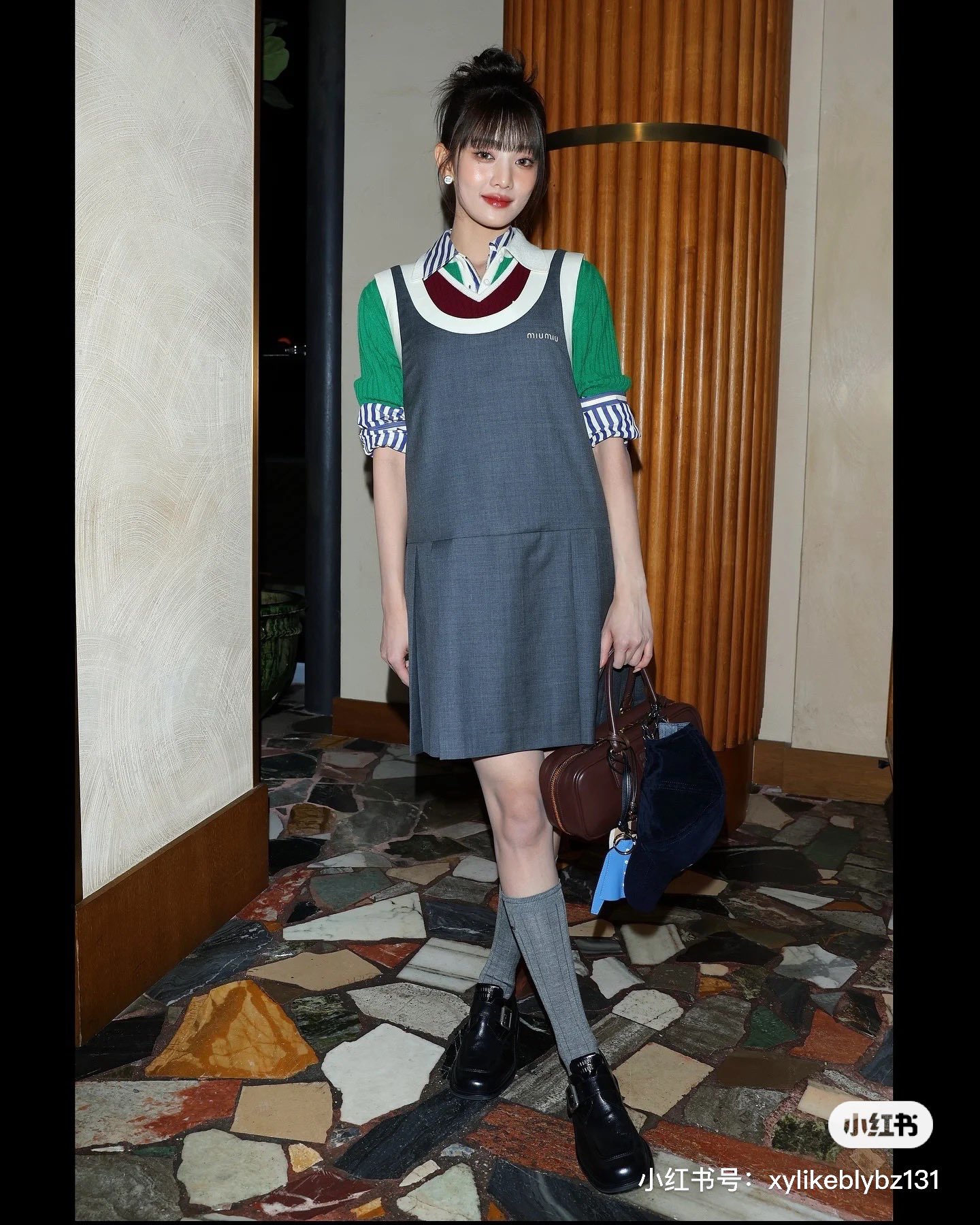 ??Miumi*24FW Fall/Winter new grey patchwork low round neck sleeveless vest dress | Original development! High-end release! It looks very nice whether worn alone or layered! The custom-made fabric is breathable and comfortable. The visual effect formed by the pleated hem makes the upper body look slimmer and more elegant! Super Concealing and slimMING FIT NO body TYPE GOOD TO WEAR ?? CUSTOM fabric ? Strongly recommended Fairy babies HURRY up and ARRANGE THEM ~ In stock SML