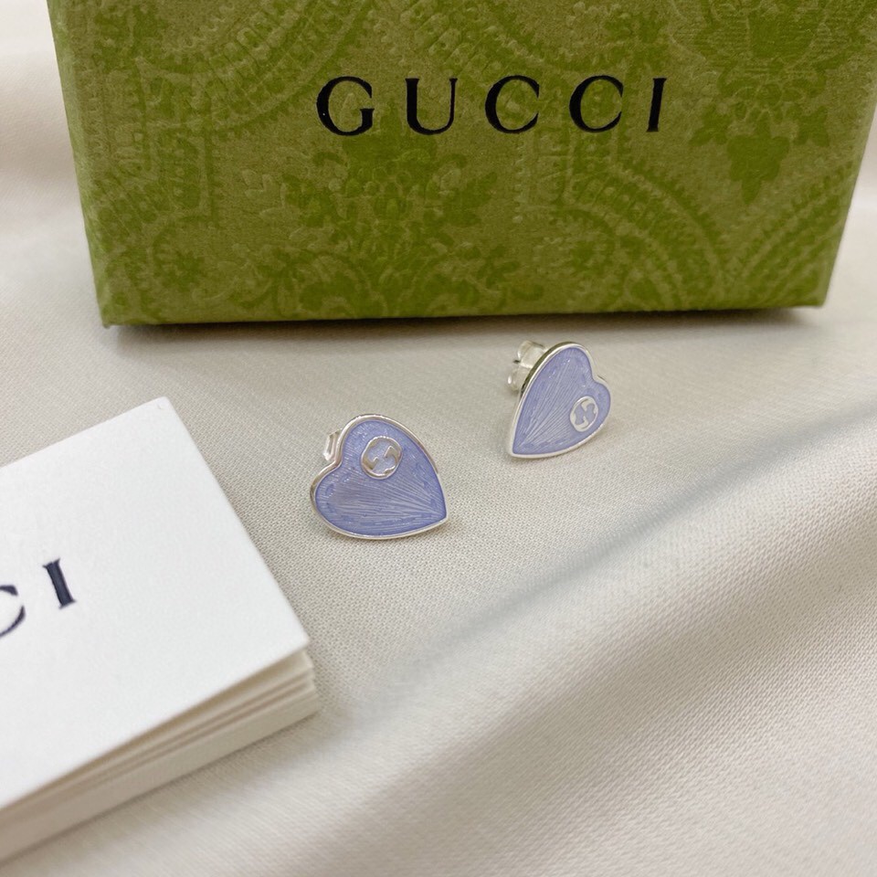 ??Gucci Double G enamel light blue heart-shaped stud Earrings Earrings/Ear studs