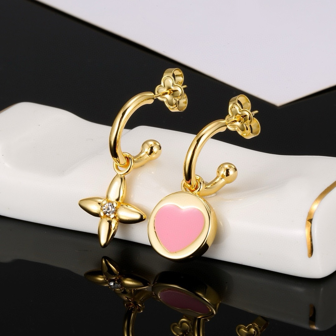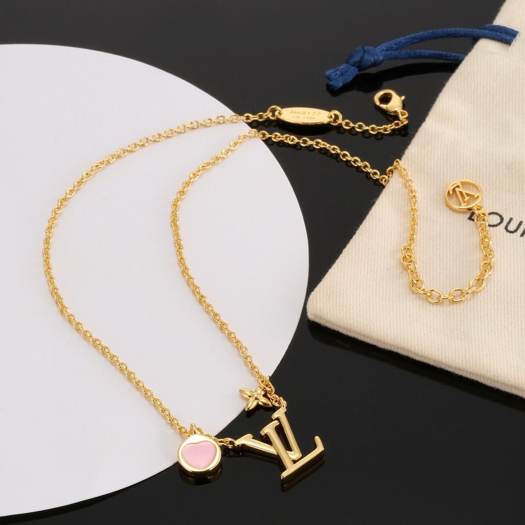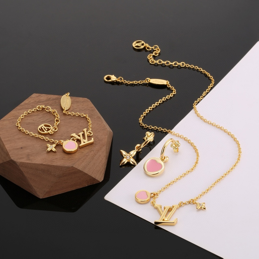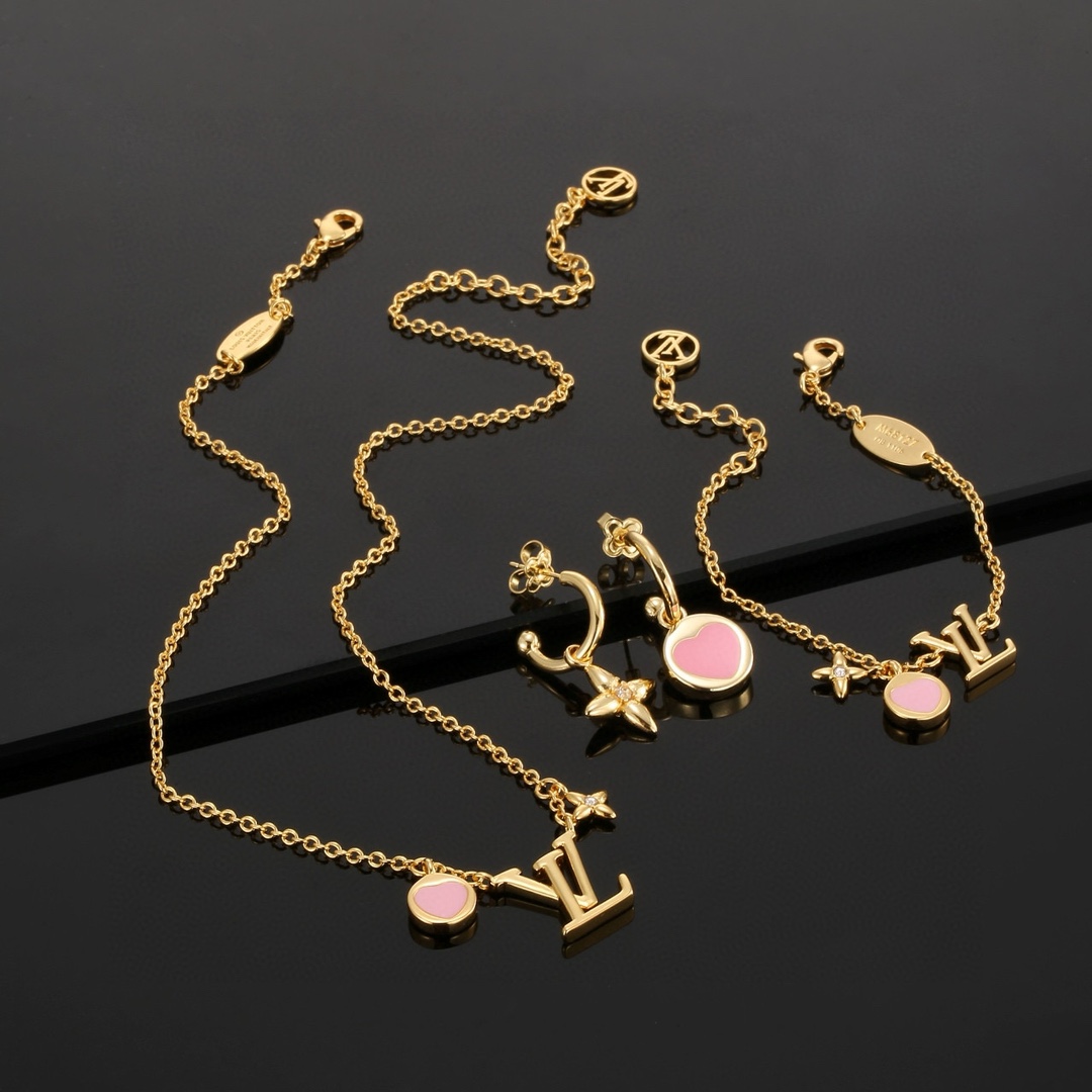 Louis Vuitton Heart Letter necklace Bracelet Stud Earrings set with exquisite craftsmanship polished color to create the natural embodiment of the classic LV letters, revealing the brand 's style star classic versatile Earrings/Ear studs