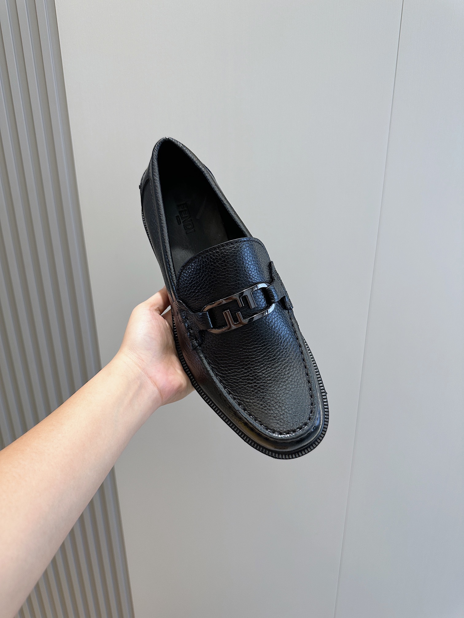 Model #4005??????Fendi black cowhide loafers for men It is decorated with FF pattern and has a silver finish metal. Imported cowhide material, cowhide lining, original factory outsole Size:39-44 (custom-made at 38.45)