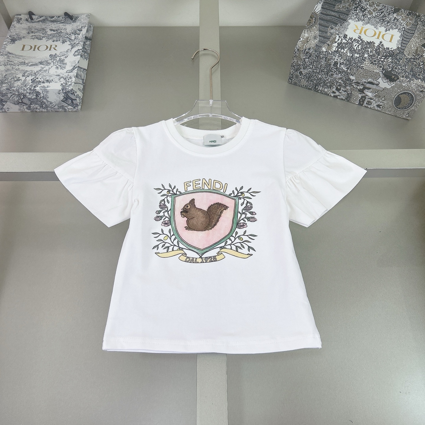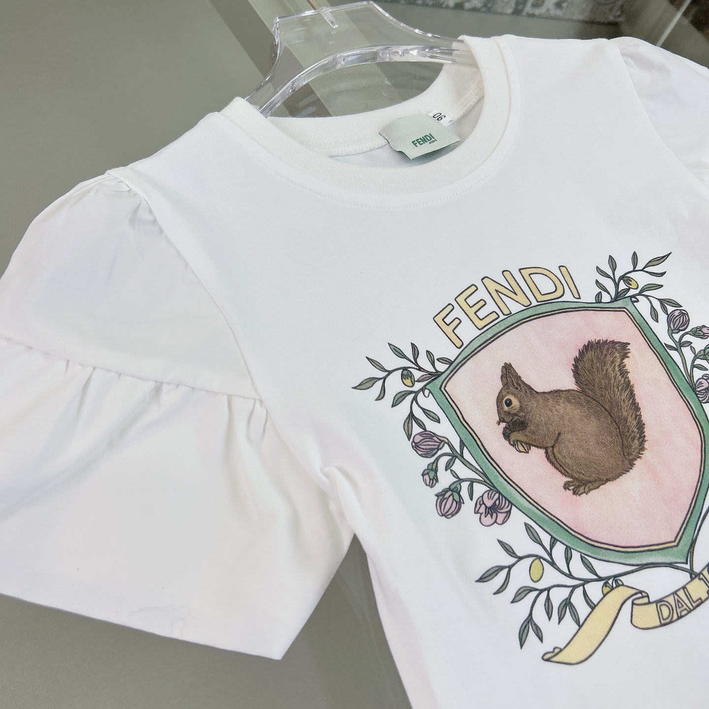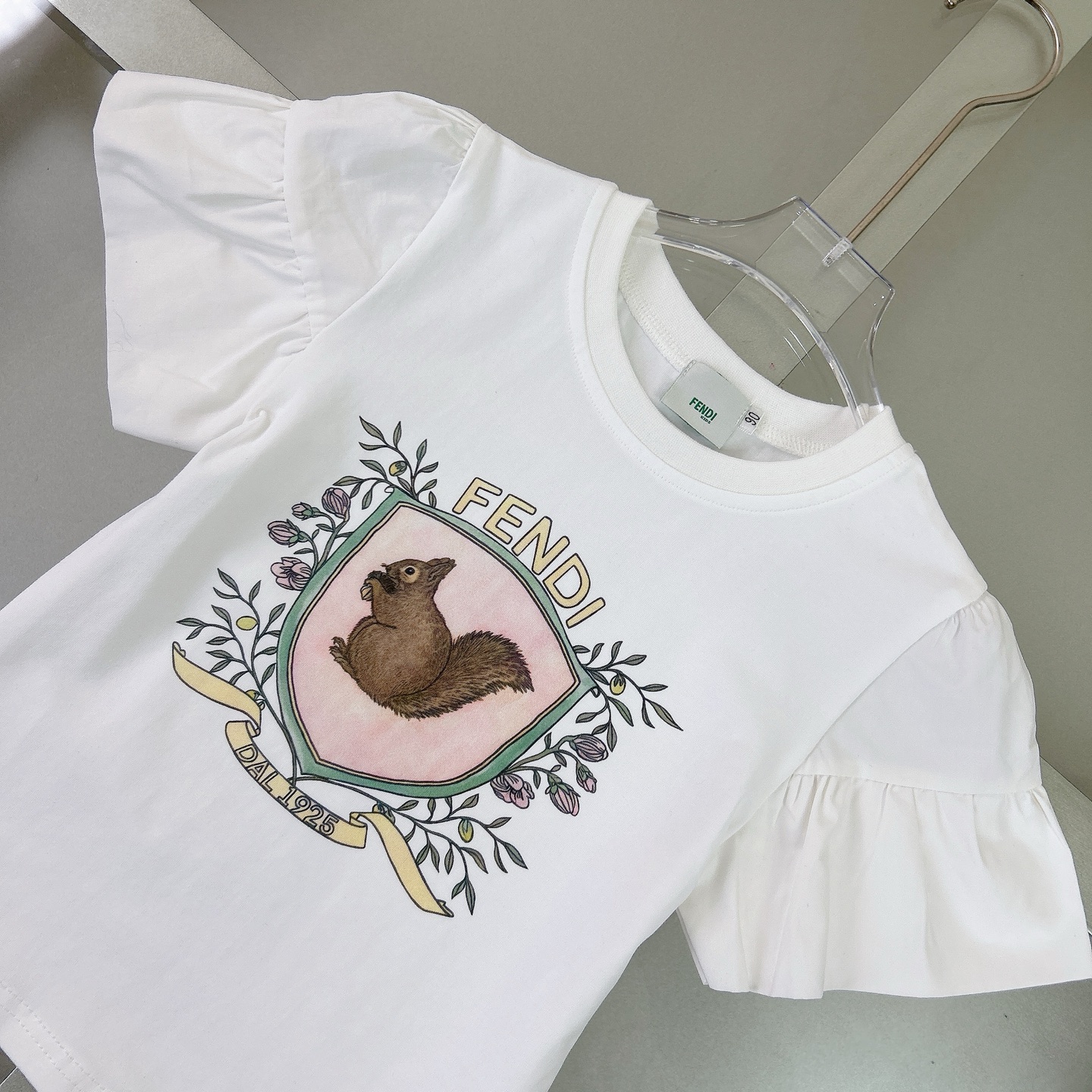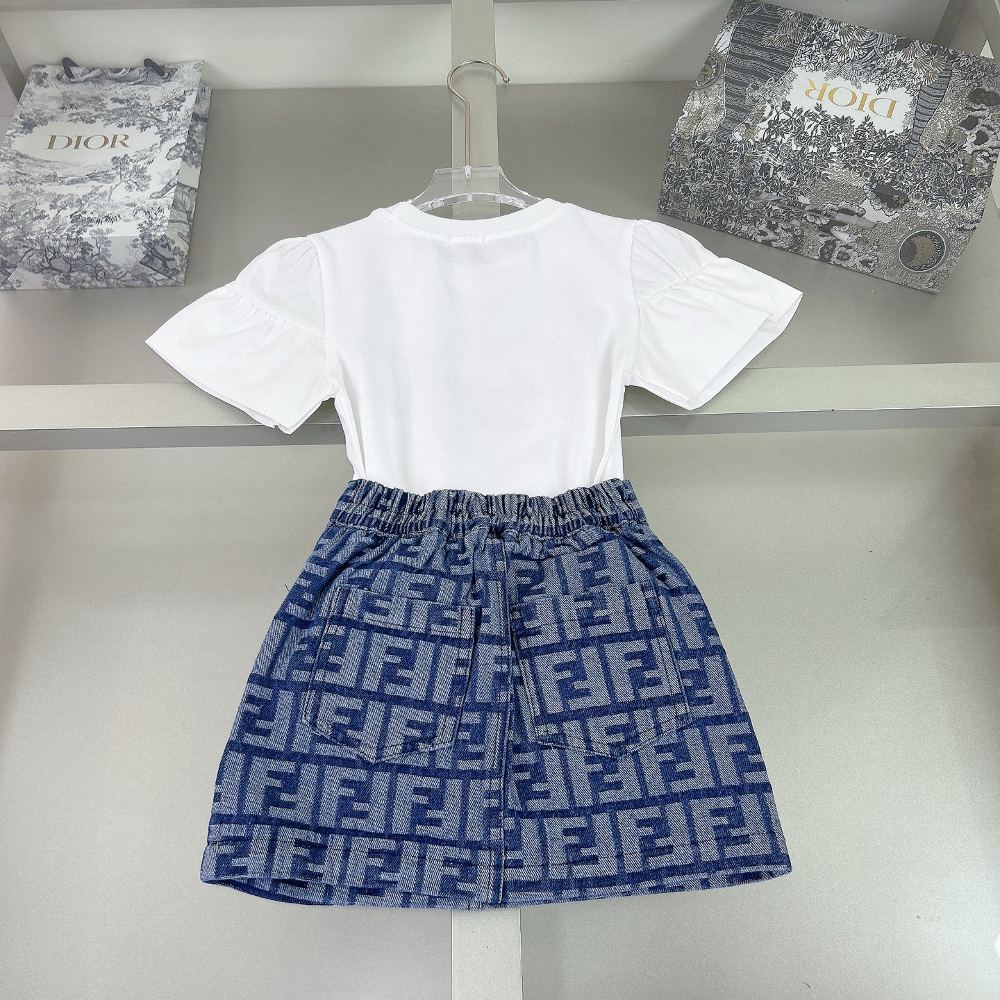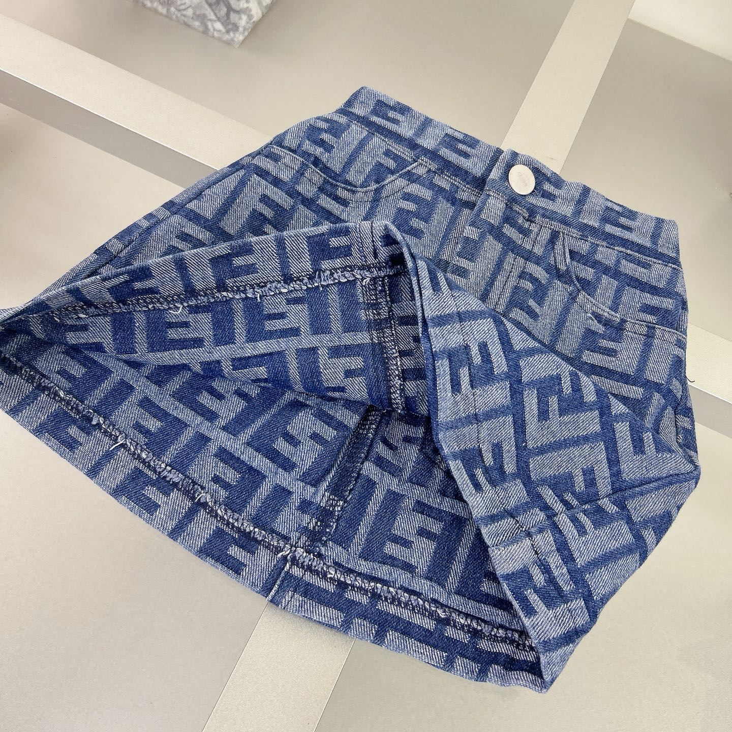 Fendi, high-end children's wear, the girl's skirt, the letter printed cotton fabrics, exquisite shell button logo lettering, short skirt jacquard denim, upper body comfortable, good-looking, code number: 90/100/110/120/130/140/150 cm