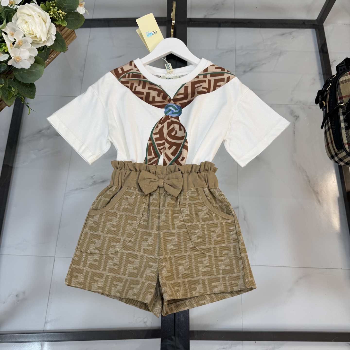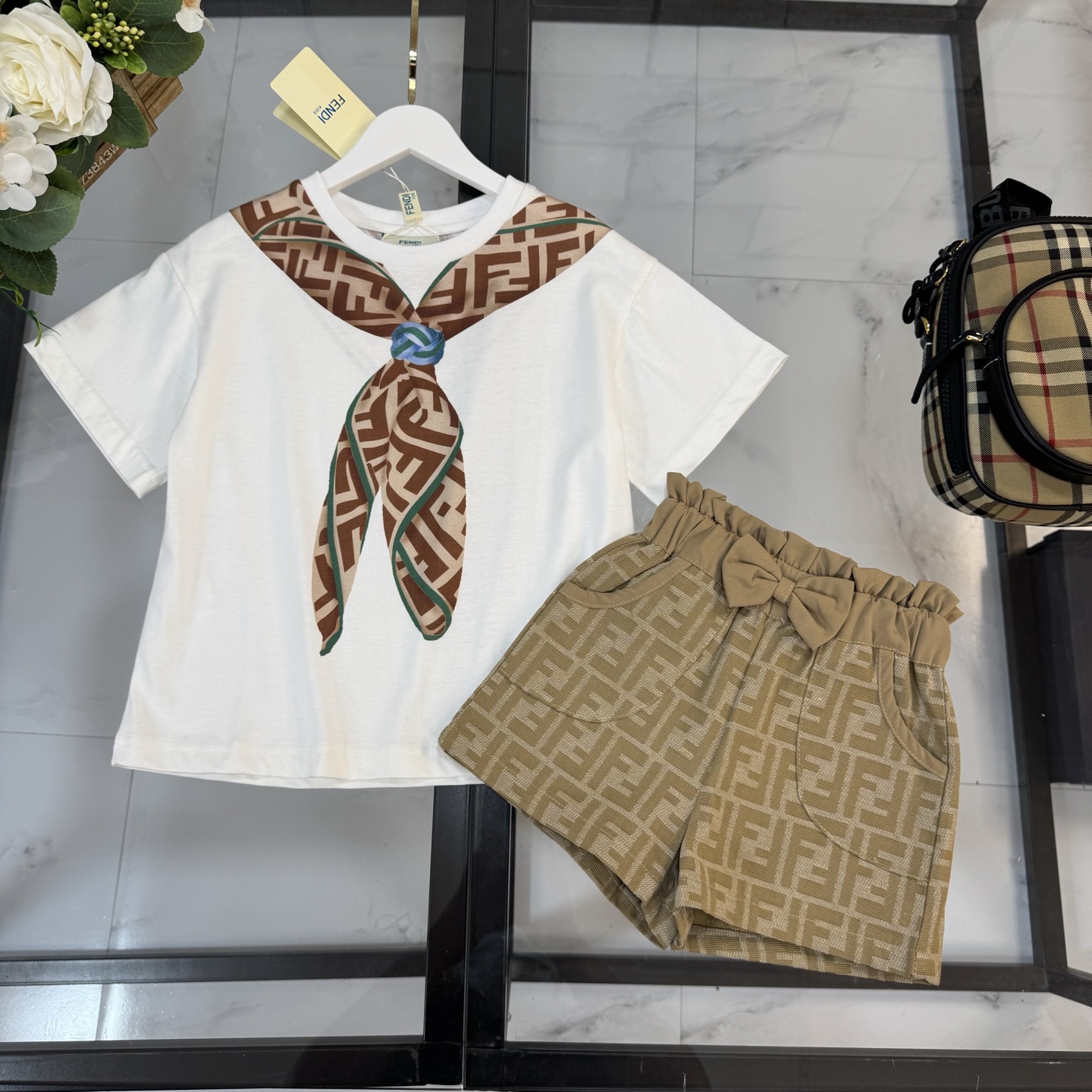 Fendi, high-end children's clothes, girls suit, pure cotton fabrics, upper body comfortable, good-looking, code number: 100/110/120/130/140/150 cm