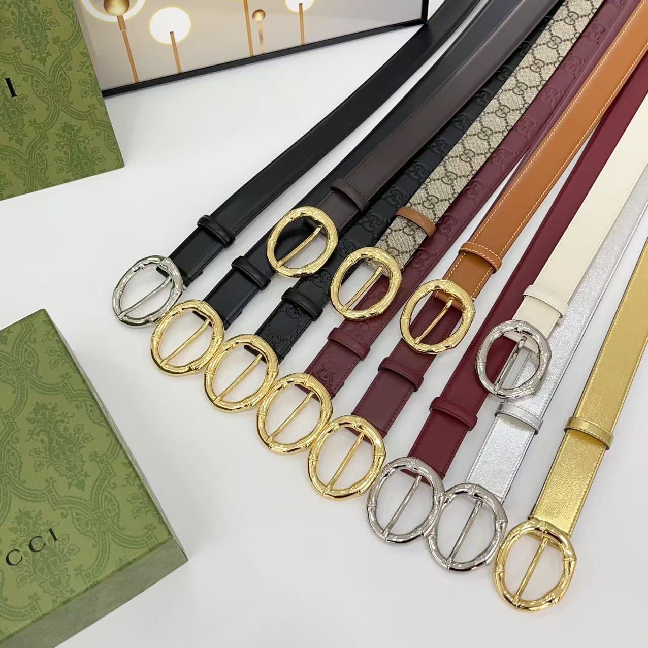 Gucci women's new bamboo buckle with double-sided cowhide and copper buckle, 3.0 cm wide Yards: 75 80 85 90 95 100 105 euros