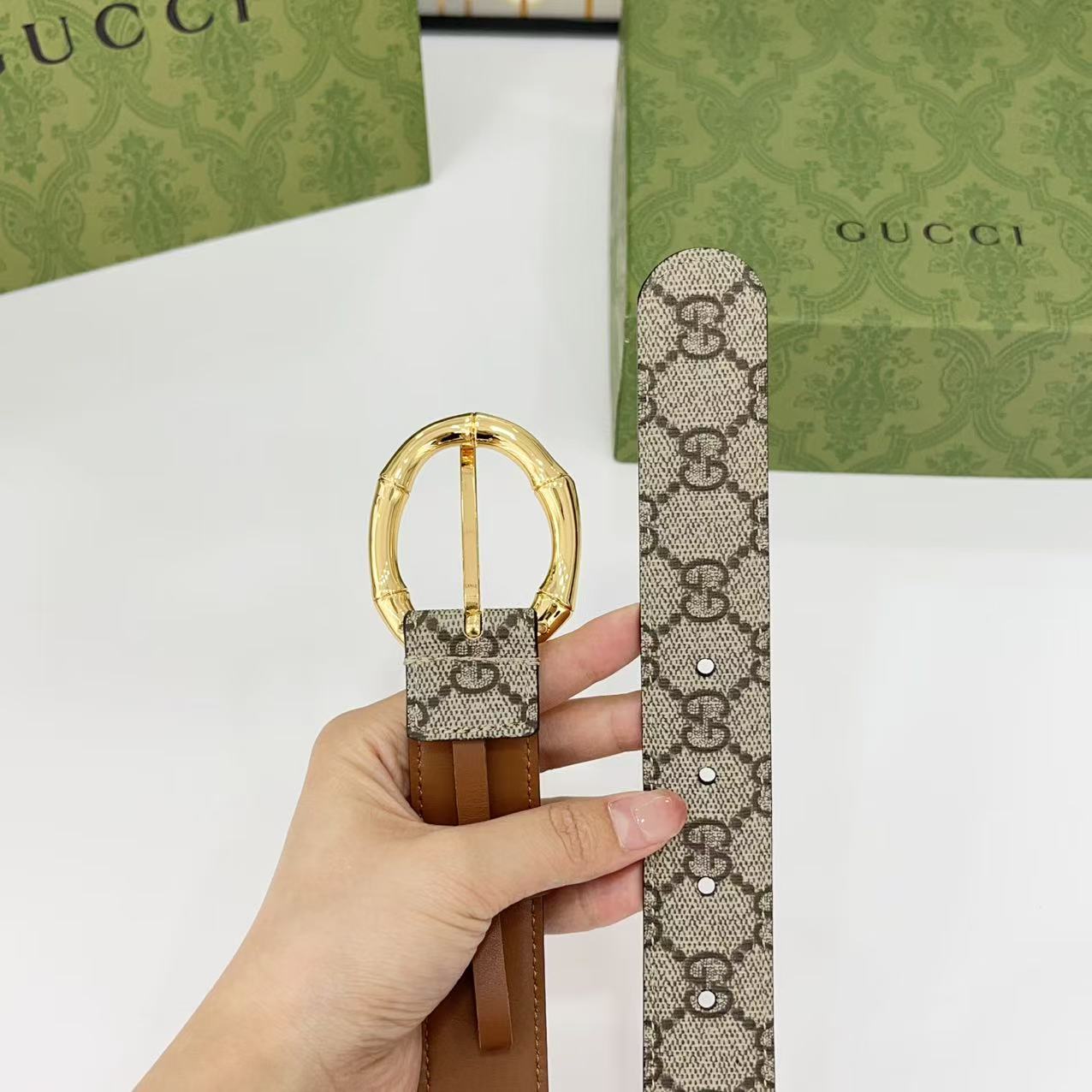 Gucci women's new bamboo buckle with double-sided cowhide and copper buckle, 3.0 cm wide Yards: 75 80 85 90 95 100 105 euros