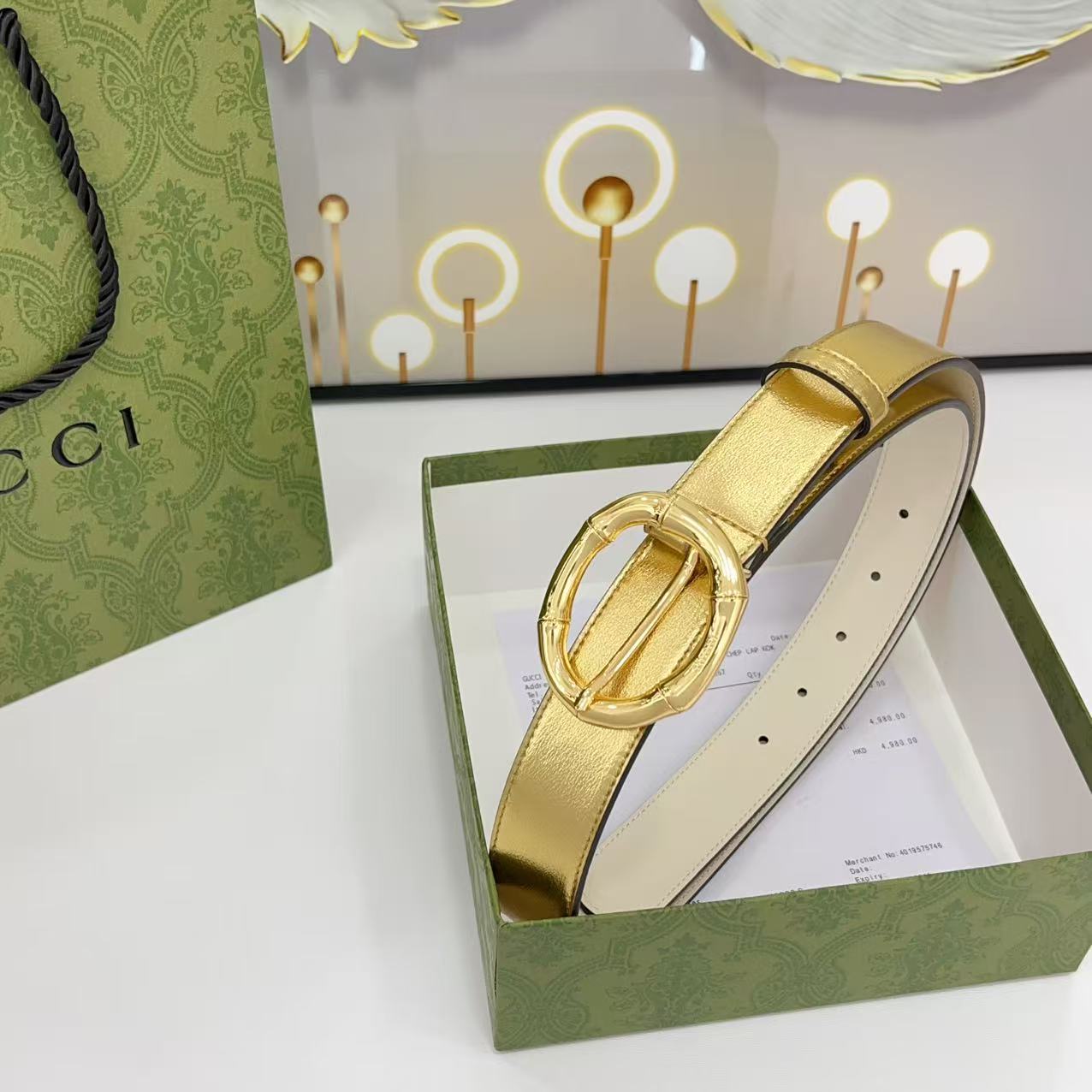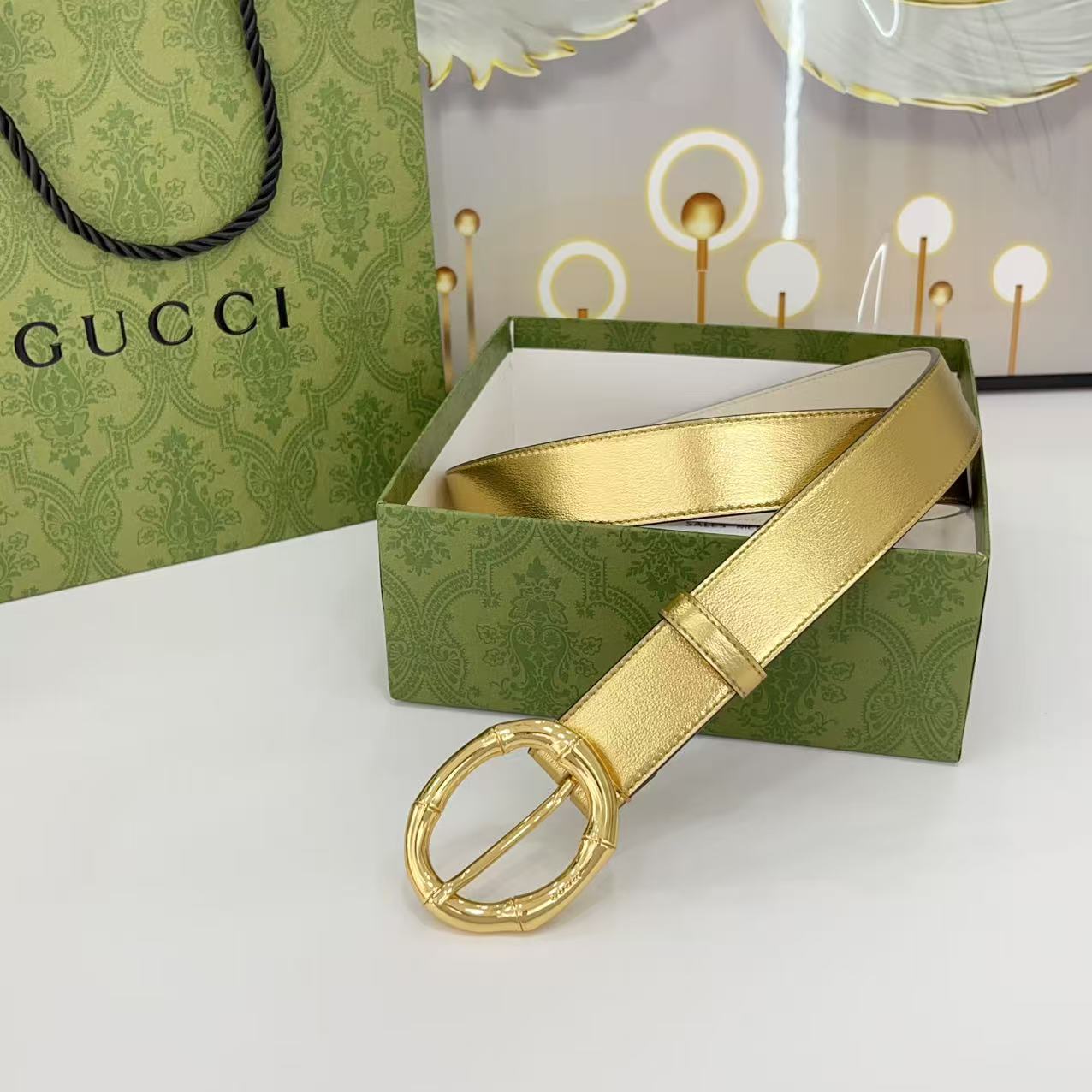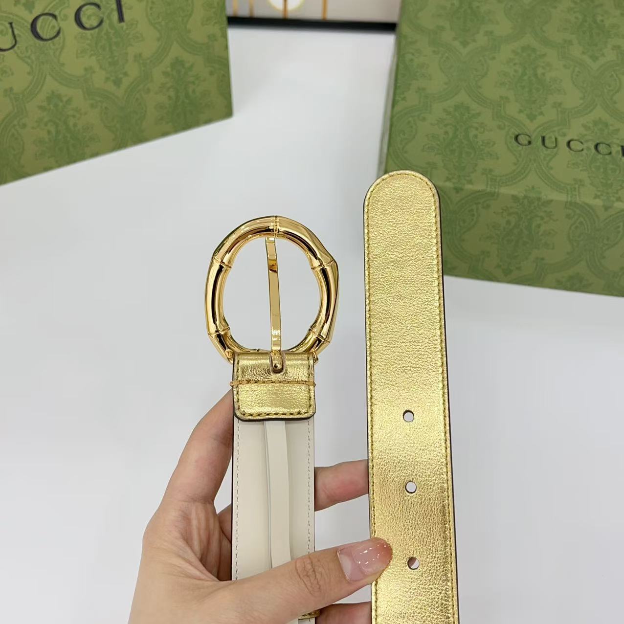Gucci women's new bamboo buckle with double-sided cowhide and copper buckle, 3.0 cm wide Yards: 75 80 85 90 95 100 105 euros