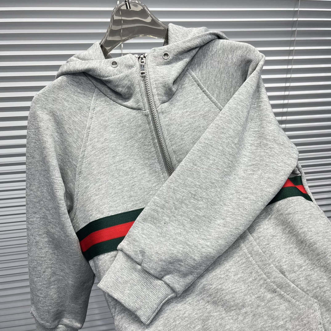 Gucci Gucci, high-end children's wear, private fleece, stripes ribbon zipper hoodie, pure cotton fabrics, upper body comfortable, good-looking, code number: 100/110/120/130/140/150/160 cm