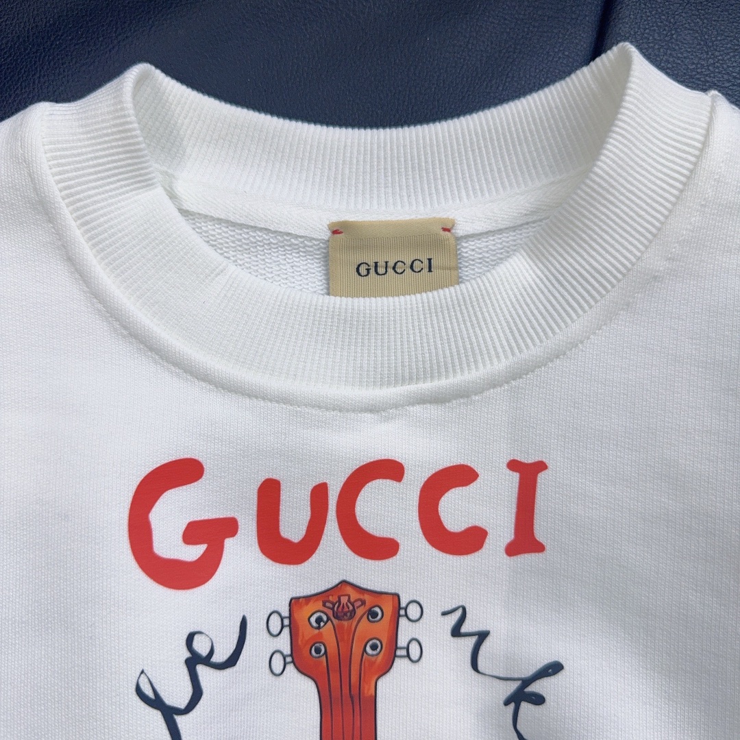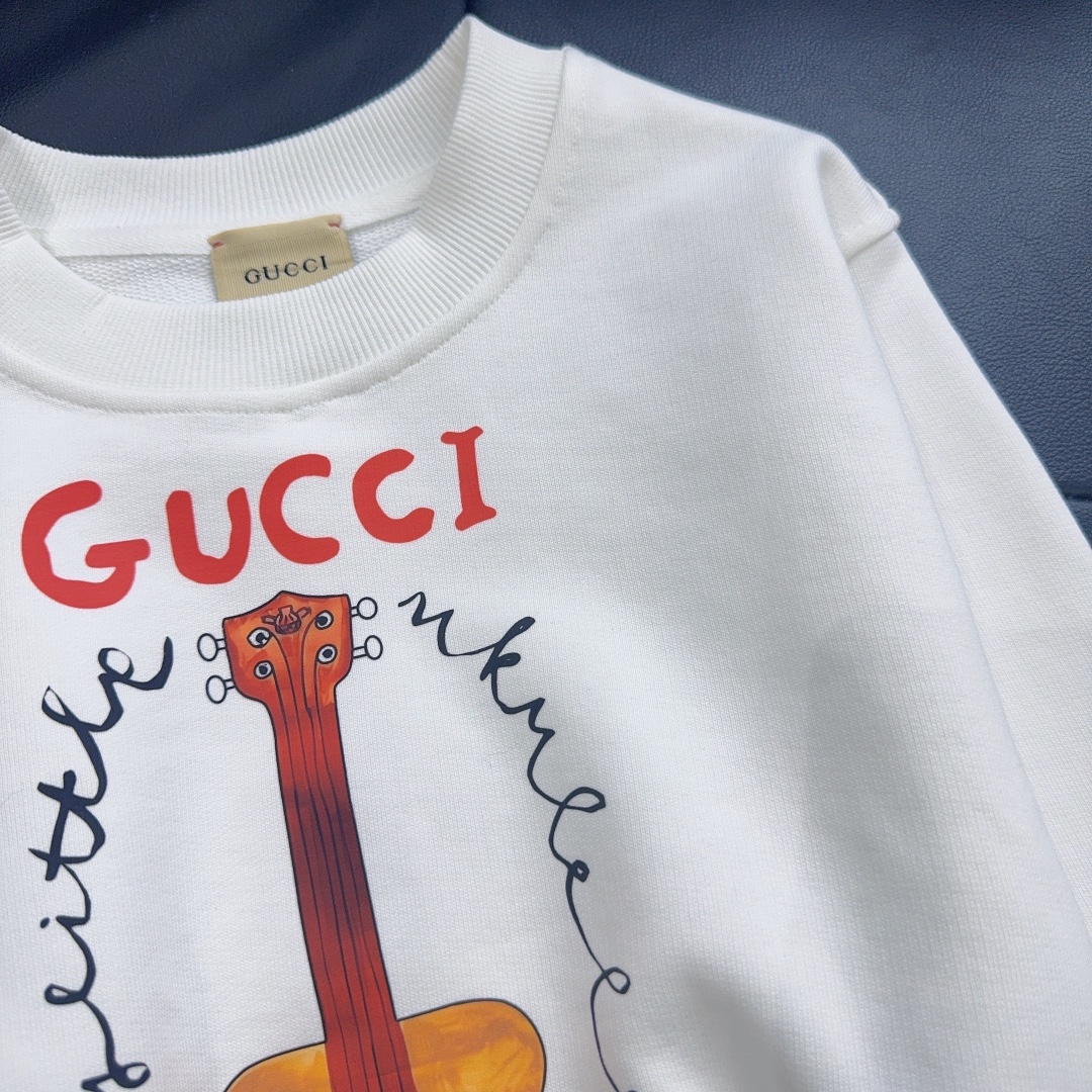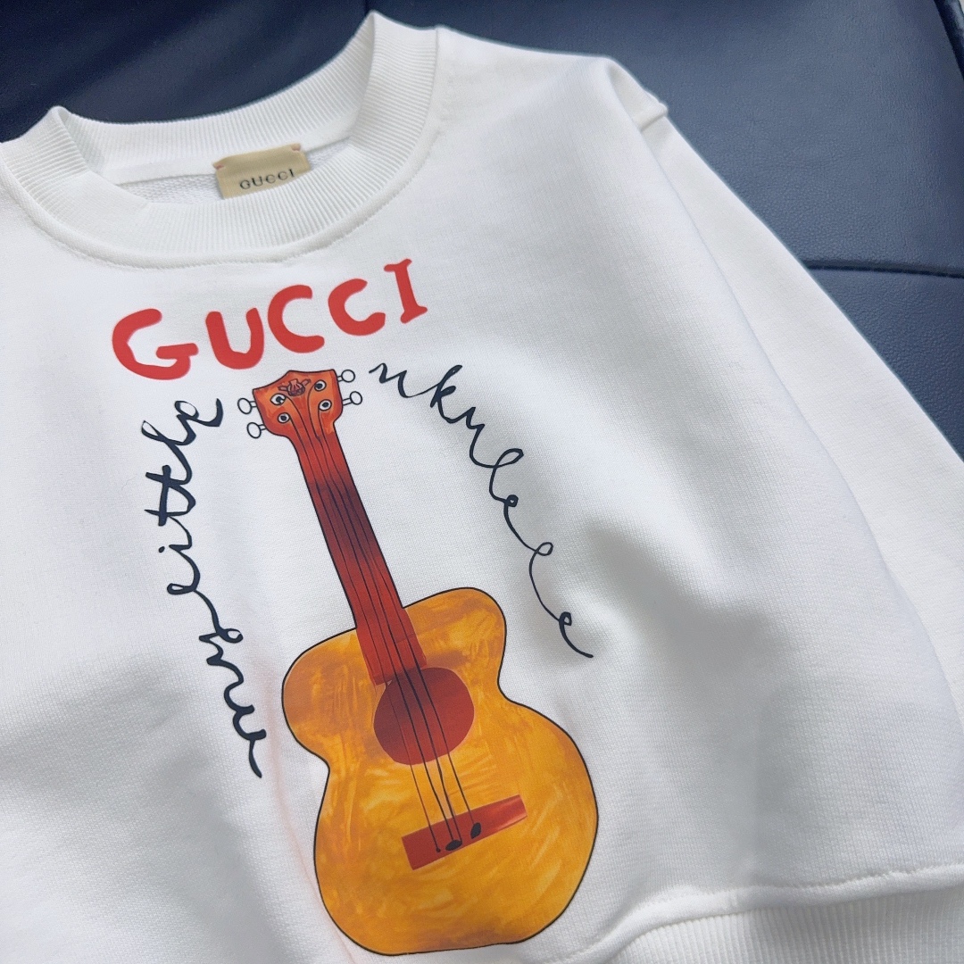 Reservation for 4 days! Gucci Gucci, high-end children's wear, private fleece, lovely guitar ?? logo printing design, pure cotton fabrics, upper body comfortable, good-looking, code number: 100/110/120/130/140/150 cm