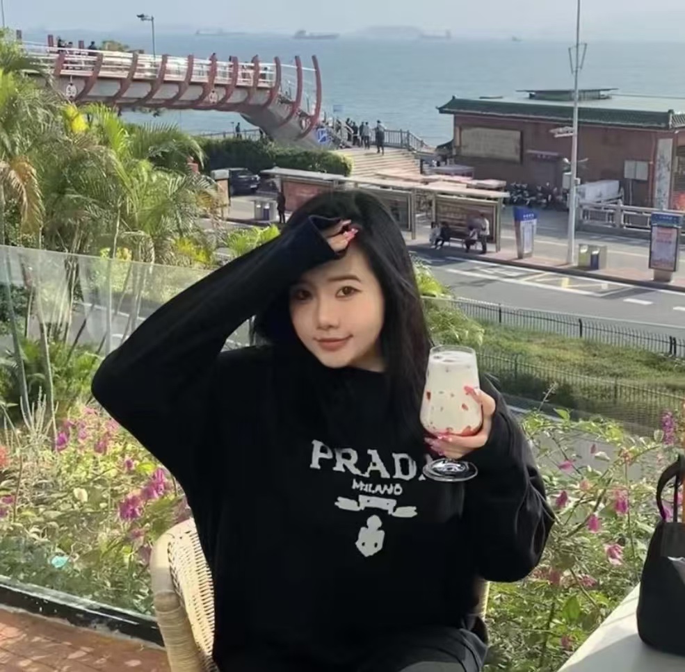 PRADA/ Prada 24Fw toothbrush embroidered logo casual round-neck sweatshirt wearing effect #