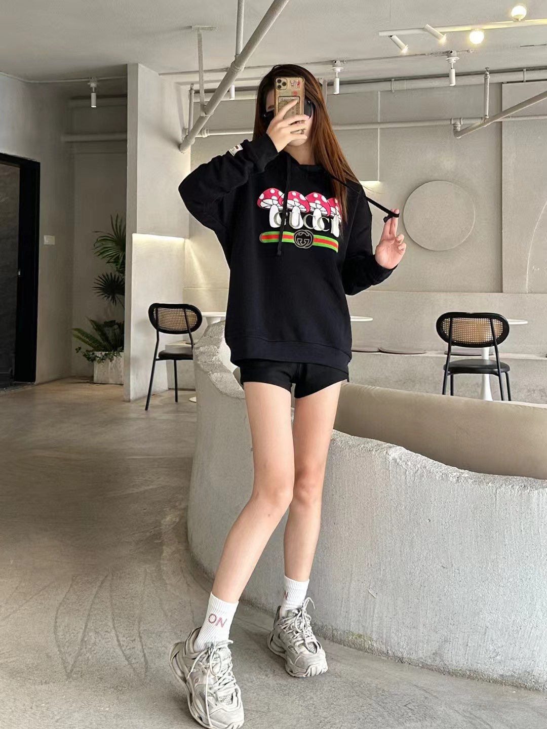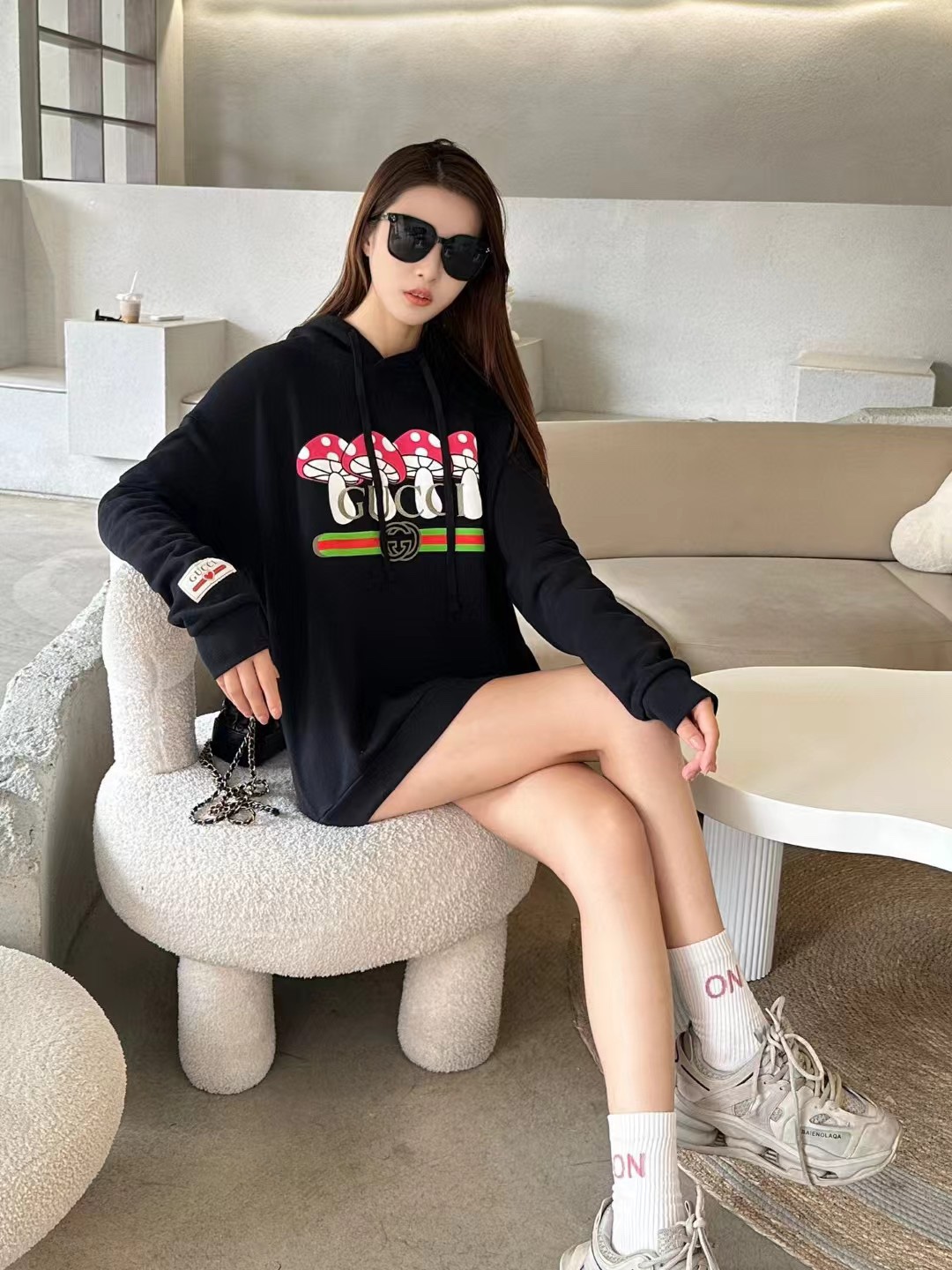 The effect of the model wearing it Gucci/