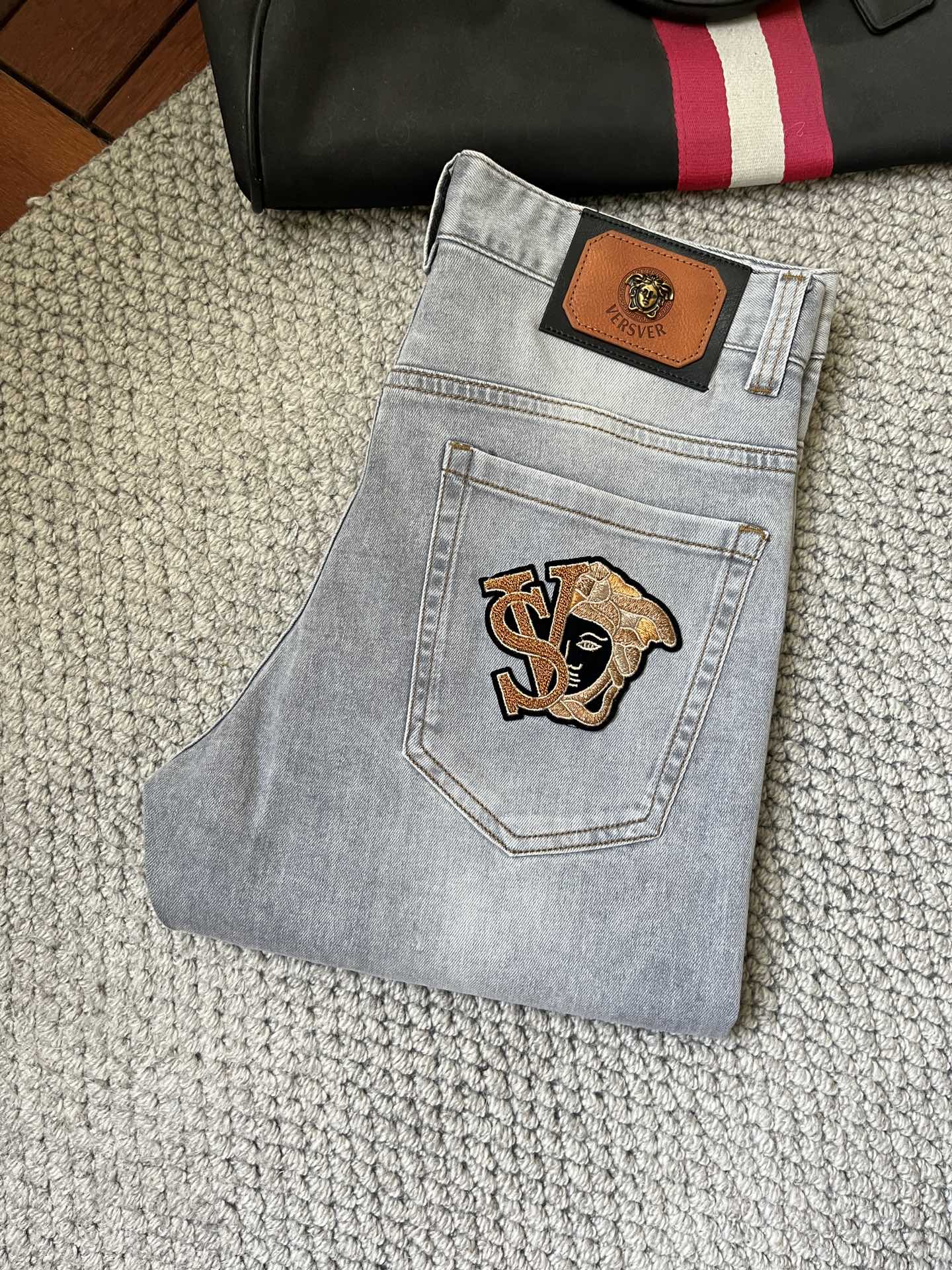 Versace original single jeans 2025 new release, original jeans, original rework, brand classic LOGO design, original hardware accessories. Custom-made denim fabric at the counter, exactly the same version at the counter. Welcome to try it on at the counter before purchasing. Good products are not afraid of comparison. Code number: 29-38(No 37)