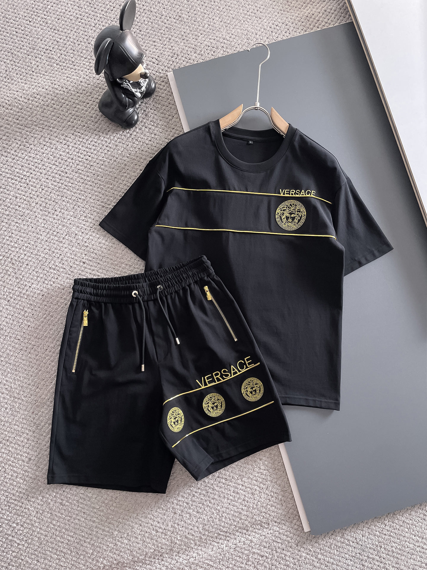 Versace ???? high-end custom 2025 spring/Summer New Collection Launch counter the latest short-sleeved and short-shorts casual set high-end custom design avant-garde fashion! The brand logo emphasizes high-end custom pure cotton fabric with meticulous craftsmanship design. Soft to the touch. Comfortable to wear. Counter level exquisite vehicle lines. The workmanship is exquisite. The wearing effect is incredibly cool! Essential items for stylish men! Size: M-3XL