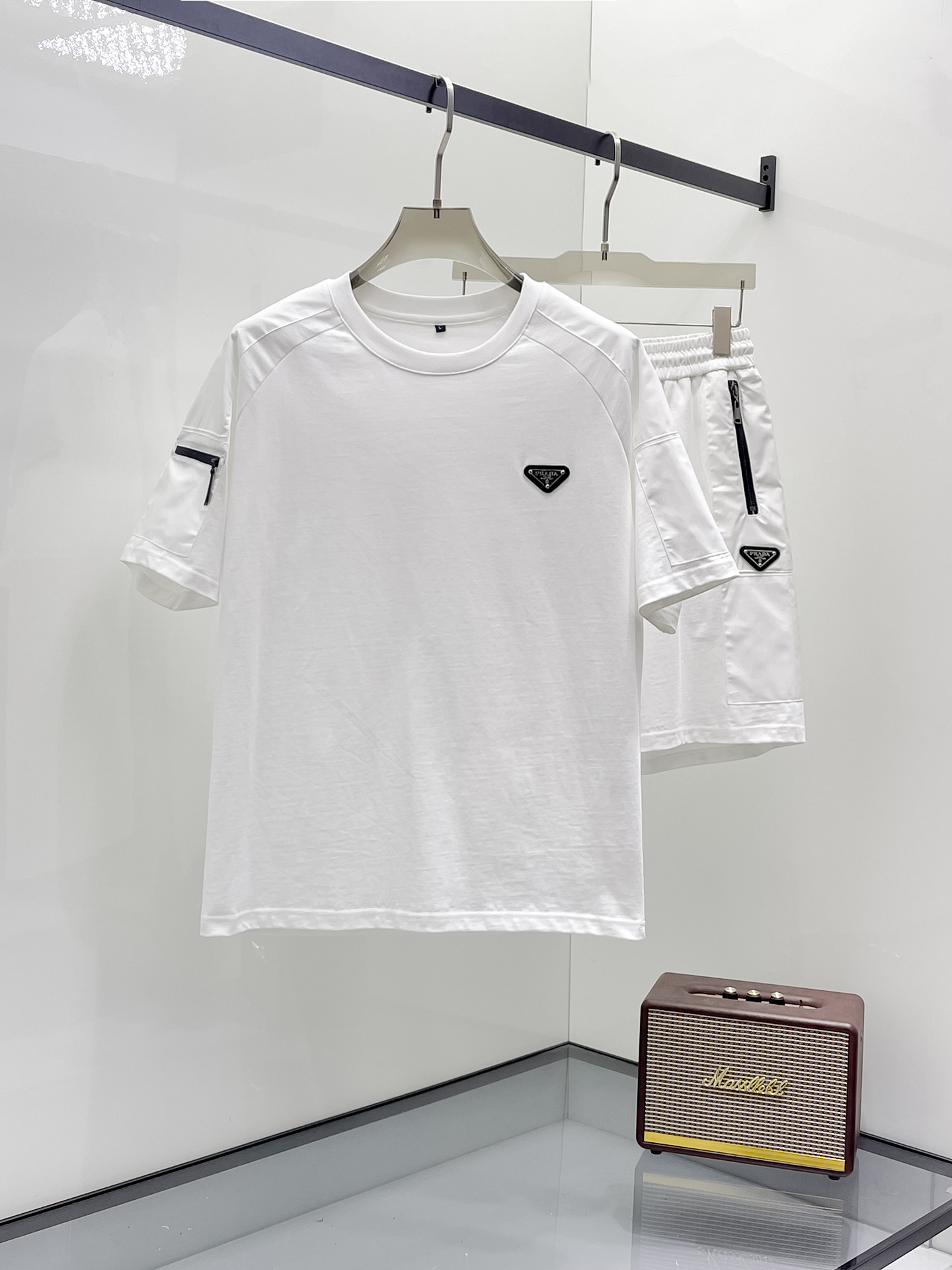 Prada's Spring/Summer 2025ss new casual short-sleeved and short-shorts set! The casual set with a fashion flavor that celebrities love the most is simple and elegant. The official website features a 1:1 craftsmanship design! The clean and neat cut exudes a strong urban style. Exclusive top-quality custom fabric is available. The hand feel is soft, dry and comfortable, and the wearing effect is crisp and stylish. The three-dimensional cutting process and the pattern are all of high standards, with appropriately sized silhouettes! It's not tight at all. Wearing it makes you feel good. With so many top-quality raw materials, it creates a high-end product with unparalleled value. It has all three standards and is the first choice for high-end, trendy and fashionable people. The wearing effect is super nice! Size: M-3XL