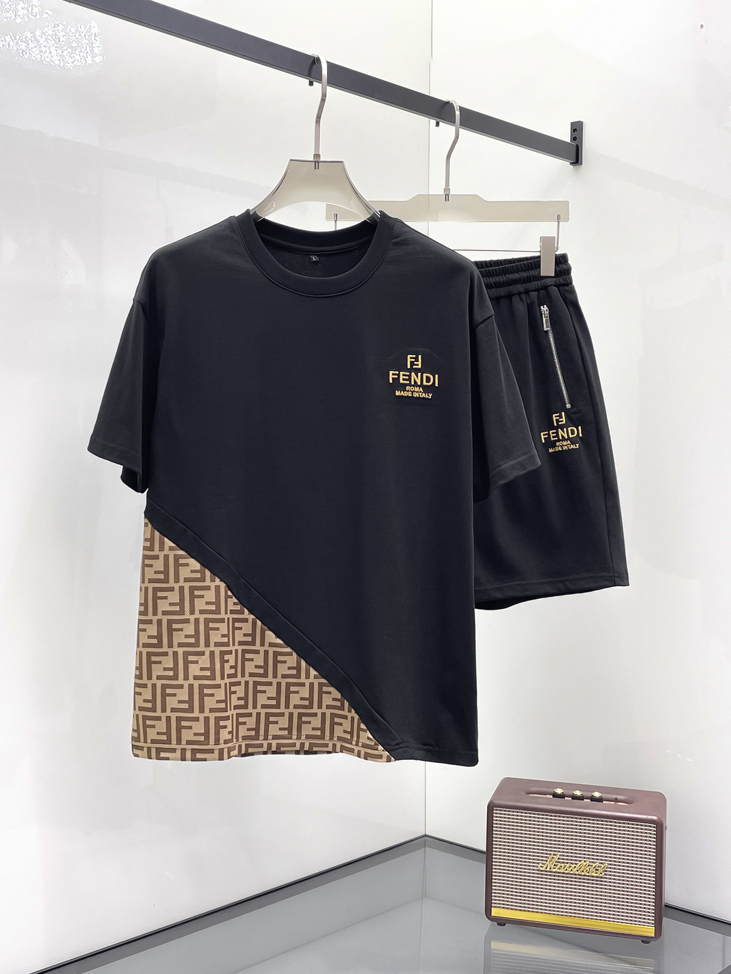 Fendi 2025ss Spring/Summer New Casual short-sleeved and short-shorts Set! The casual set with a fashion flavor that celebrities love the most is simple and elegant. The official website features a 1:1 craftsmanship design! The clean and neat cut exudes a strong urban style. Exclusive top-quality custom fabric is available. The hand feel is soft, dry and comfortable, and the wearing effect is crisp and stylish. The three-dimensional cutting process and the pattern are all of high standards, with appropriately sized silhouettes! It's not tight at all. Wearing it makes you feel good. With so many top-quality raw materials, it creates a high-end product with unparalleled value. It has all three standards and is the first choice for high-end, trendy and fashionable people. The wearing effect is super nice! Size: M-3XL