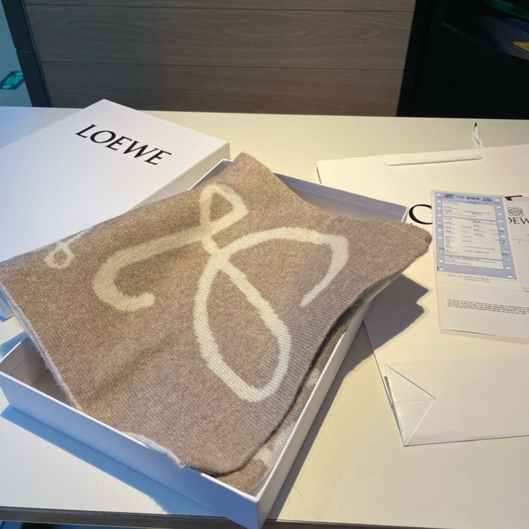 Loewe. Original order! Highly recommended! 2022 New knitted scarf! A low-key sense of luxury. A super soft, elite and expert-level fashionable scarf! This loewe cashmere jacquard scarf becomes more and more beloved and fashionable the more you look at it! This craftsmanship and color matching are obvious to be extraordinary at a glance. I really, really like this expert-level sense of fashion. Fashionable people with attitude will surely love it! Such a design is more expansive, more sophisticated, more grand and more worthy of recommendation! This cashmere is produced using the downy tips from the bellies of purebred Albas cashmere goats collected every spring. The characteristic of this cashmere is that even after human processing, it retains the essence of the original cashmere to the greatest extent and has a special texture pattern! Holding a scarf in your hand is just like holding a cloud, still giving a fluffy and airy feeling! It's really very high-end! Finally, the most distinctive feature of this is the design sense of the jacquard process, which perfectly presents the classic loewe logo in another way! 30*190cm.