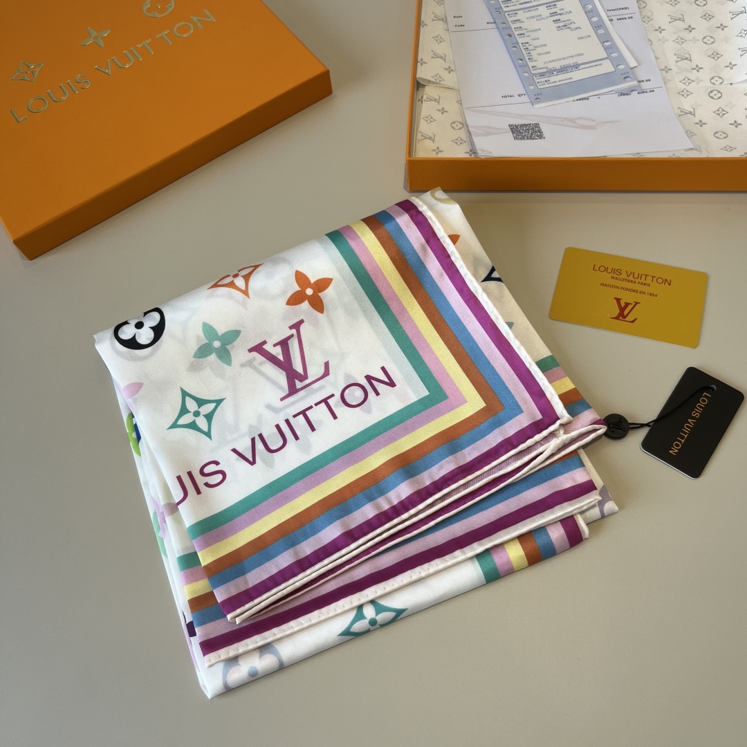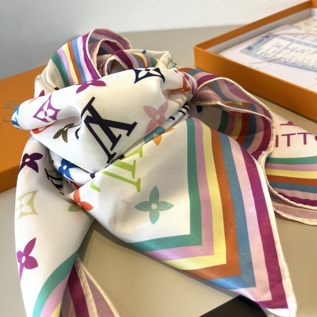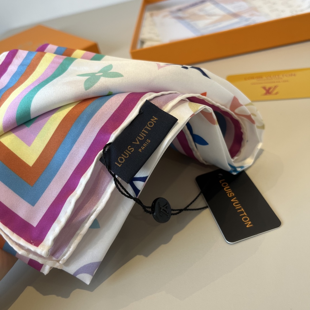 Lv handkerchief, 13 color Monogram print, twill silk material ?? Hand-rolled edge, very luxurious ?? Exquisite belt combination classic pattern matching skin tone and versatile high-end heavy twill silk ??