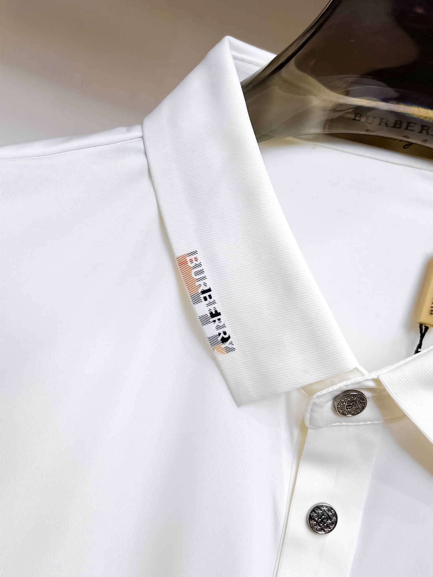Burberry's must-have item for high-end business white-collar workers! Seamless embossed ice silk casual business short-sleeved Polo, made of technological fabric, ice silk seamless, with an excellent body feel, smooth hand feel and great texture! It has good elasticity and no sense of restraint at all. The fabric comes with breathable mesh, which can absorb moisture and sweat, and dries quickly to keep it dry. The small lapel and front button design shows a tall and straight posture. It is not soft and slippery. The simple style is suitable for both business and casual wear. Highly recommended! High-elasticity ice silk, with a touch as smooth as jade silk, clean and neat, exuding an elegant and gentlemanly demeanor. High-end materials, with the focus on the fabric. Quality control is a must. The hand feel is extremely fine and smooth, and the fabric has a good luster and a good frame feel when worn, making it a mature and high-quality men's wear! Summer sweat dries instantly, a brand-new experience for business commuting and leisure M-4XL