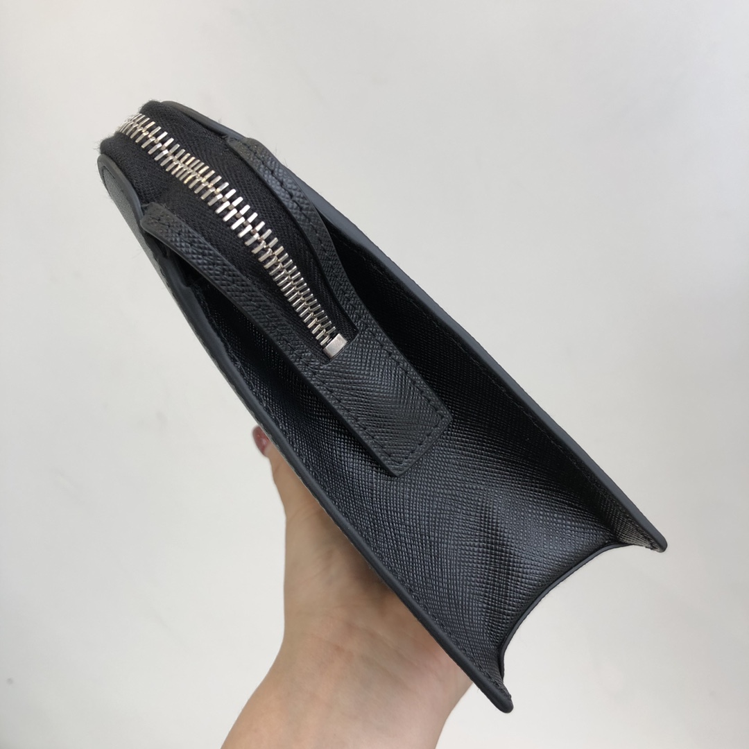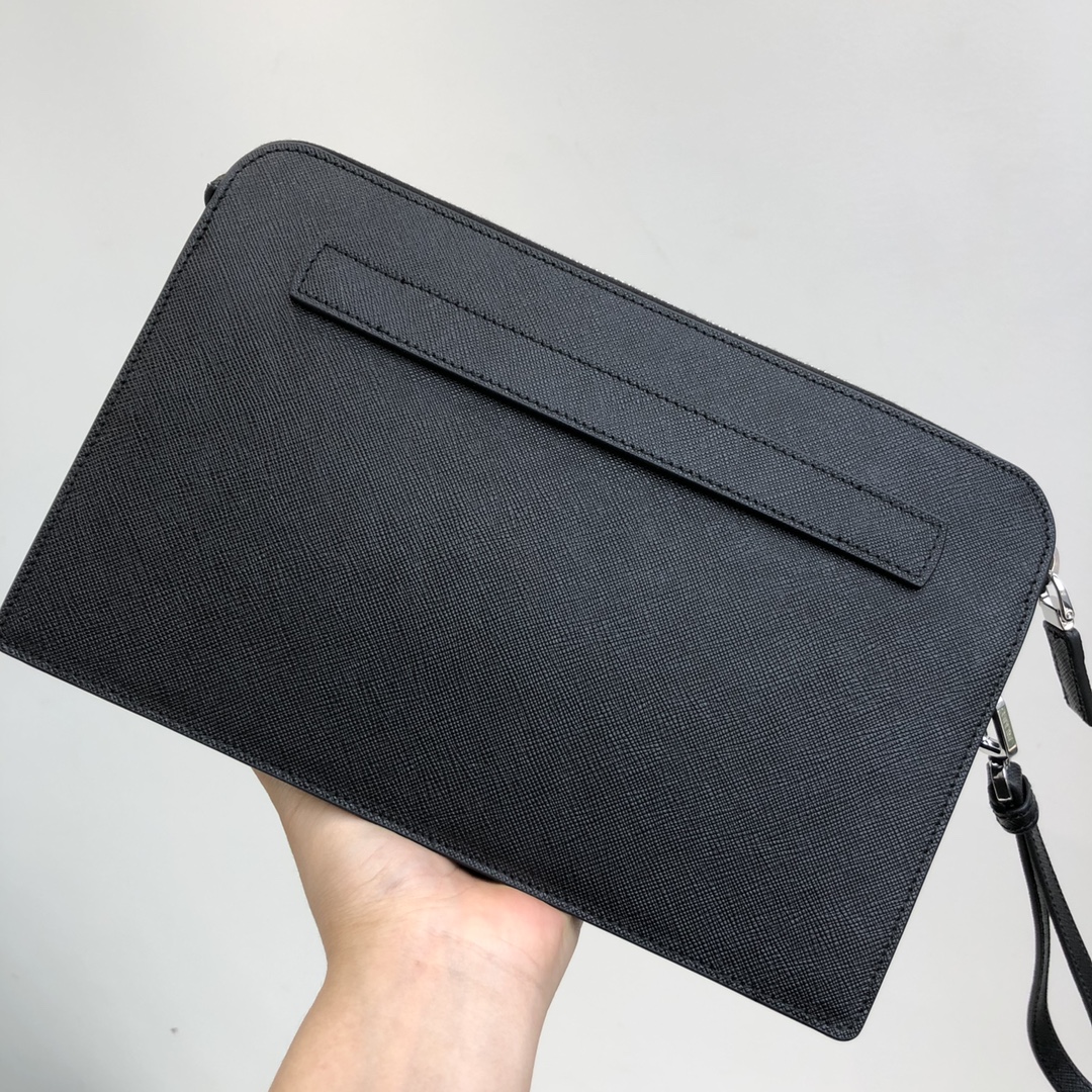 26.5cm black Prada men's clutch with letter grains ~