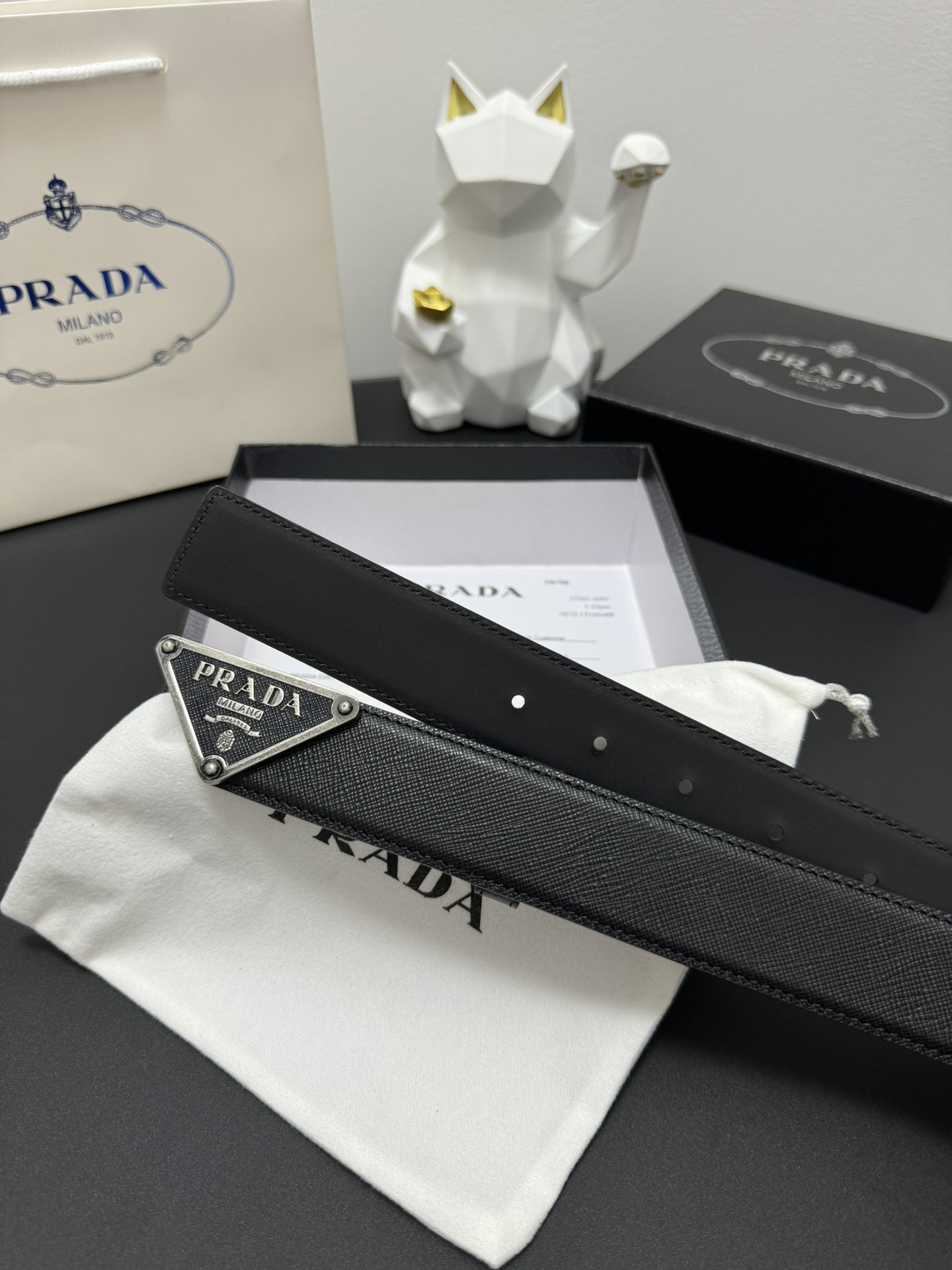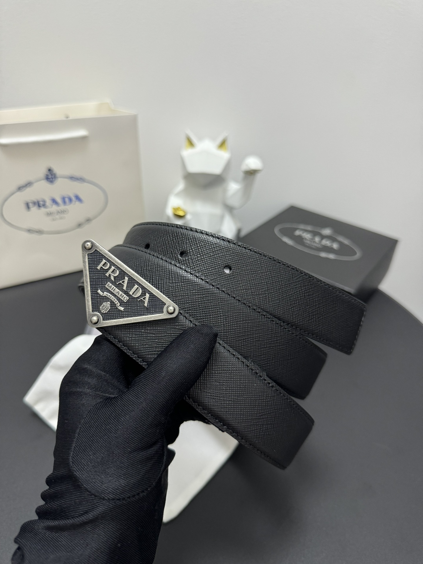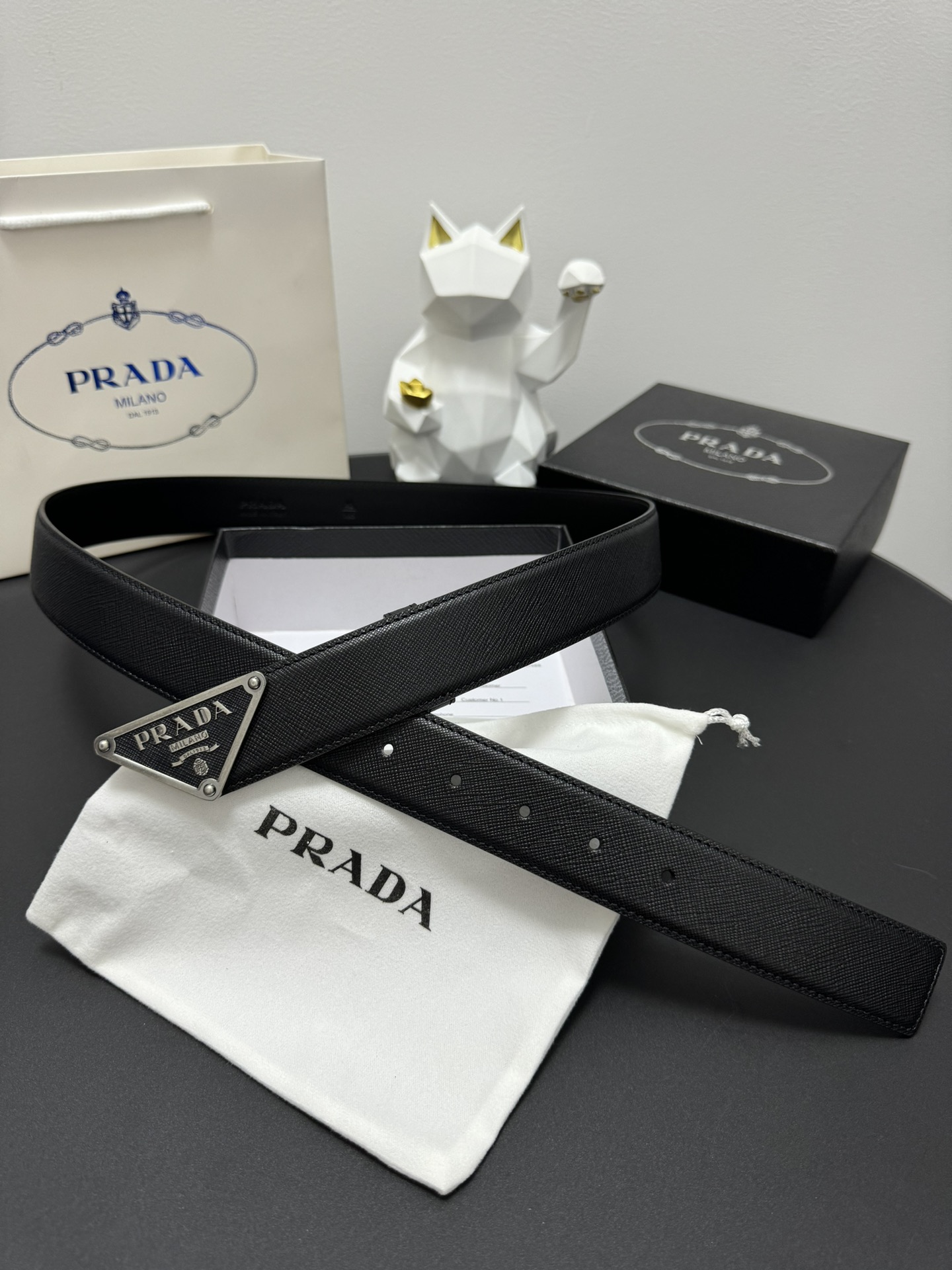 PRADA 3.5cm Cross-patterned cowhide texture quality Every detail reflects the highest taste and style The overall design adds an elegant charm A model of understated luxury Elegant and charming aura Exquisite handicraft production.