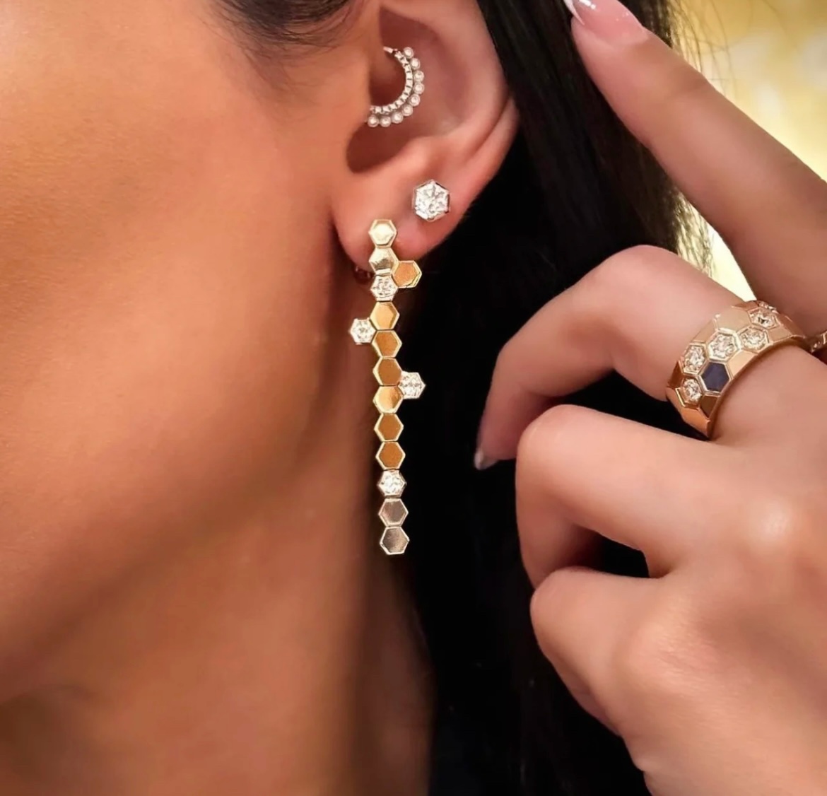 V gold ZP plate CNC engraving im-gold 2150250?? (code: 678) Shangmei wide honeycomb Ring ??, high-end custom ? Continuing honeycomb Bee My Love replicate the love of the honeycomb in the heart, carry love on the body, build the love nest together ?? super shining ??Rings Ring