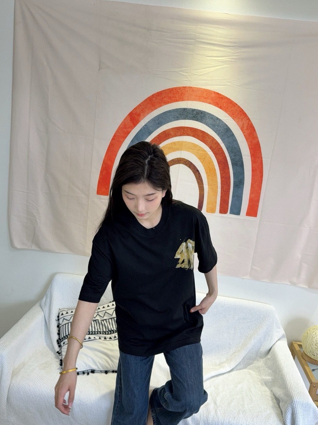 Balenciaga hand-painted double B print short-sleeved shirt look #