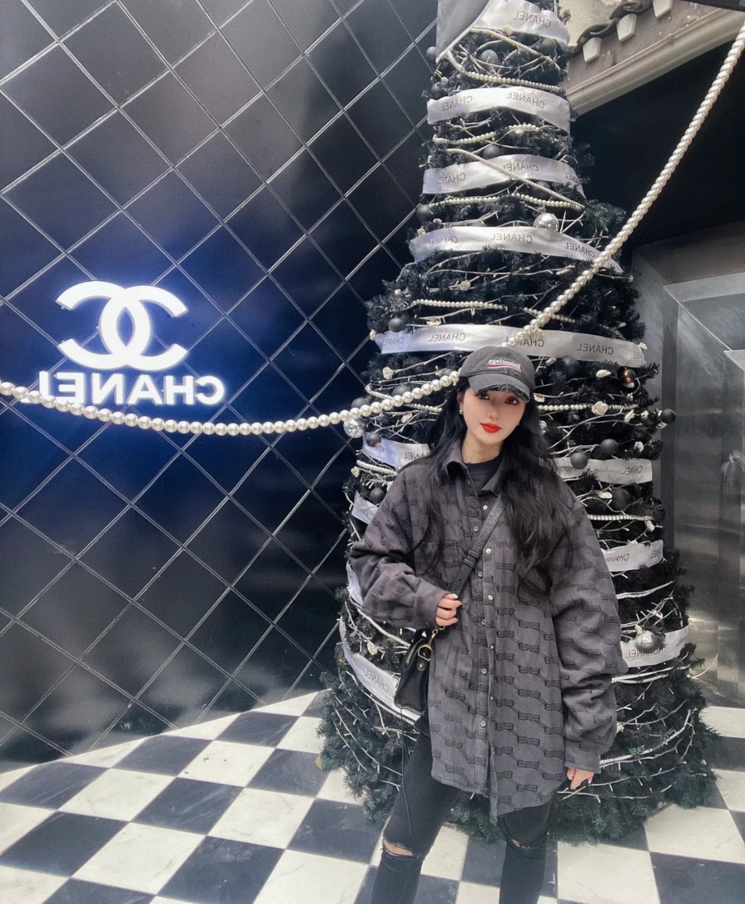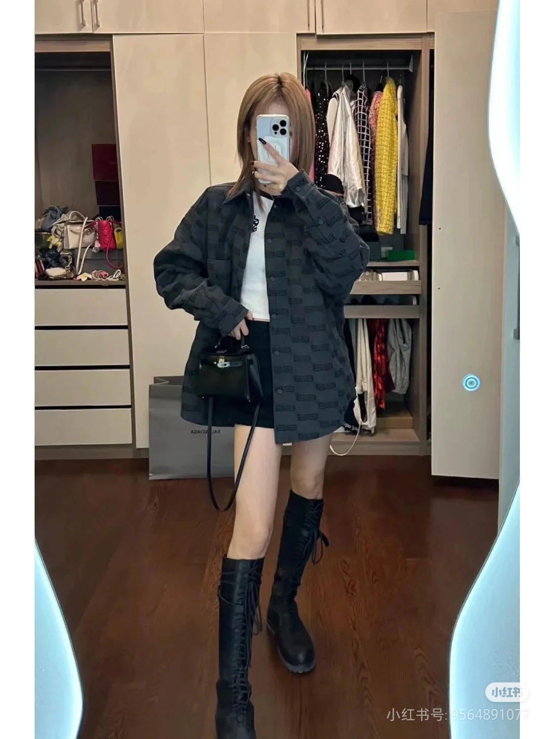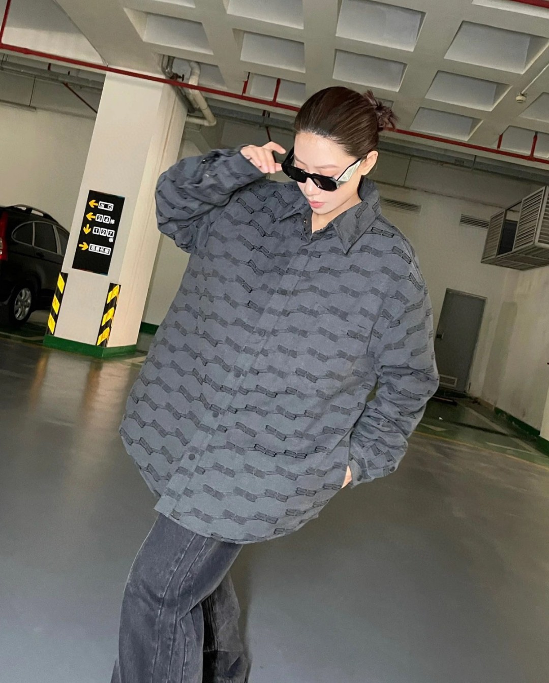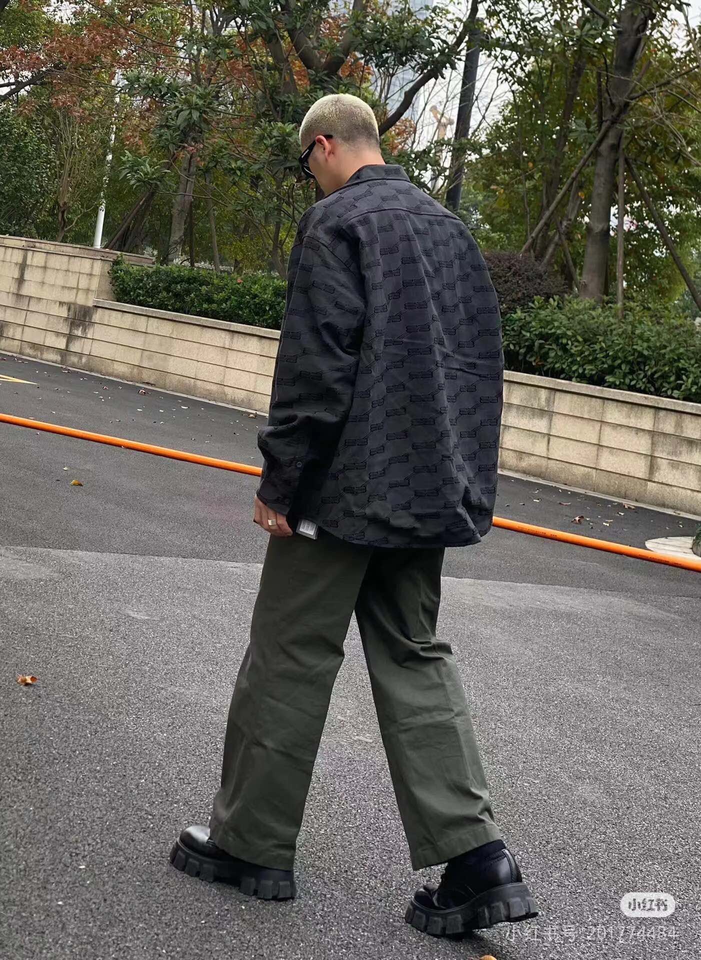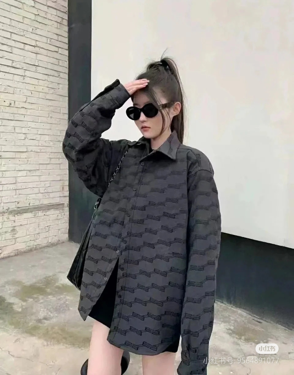The wearing effect of the Balenciaga 24FW full-width double B-lock jacquard long-sleeved shirt #