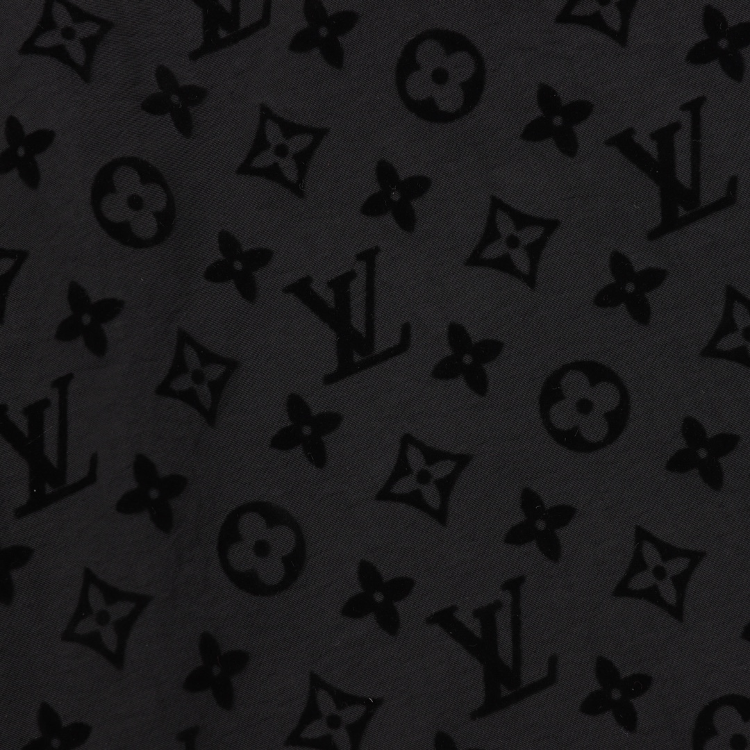 Louis Vutton long-sleeved shirt fully printed with flocking LOGO The bottom of the high-count, ultra-high-density plain weave is fixed and dyed with a blu-blue black color, creating a contrast between the bottom and the pattern color. The pattern area uses imported wool to highlight the wool height and density of the original board. Imported environmentally friendly super strong glue is used for bonding to ensure that the wool does not fall off during water washing. The entire garment is cut by infrared alignment to ensure that every part is aligned. Size: XS-L
