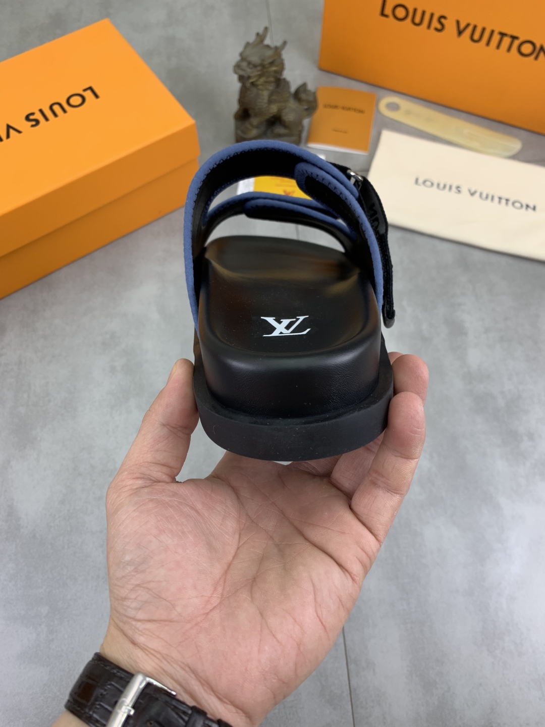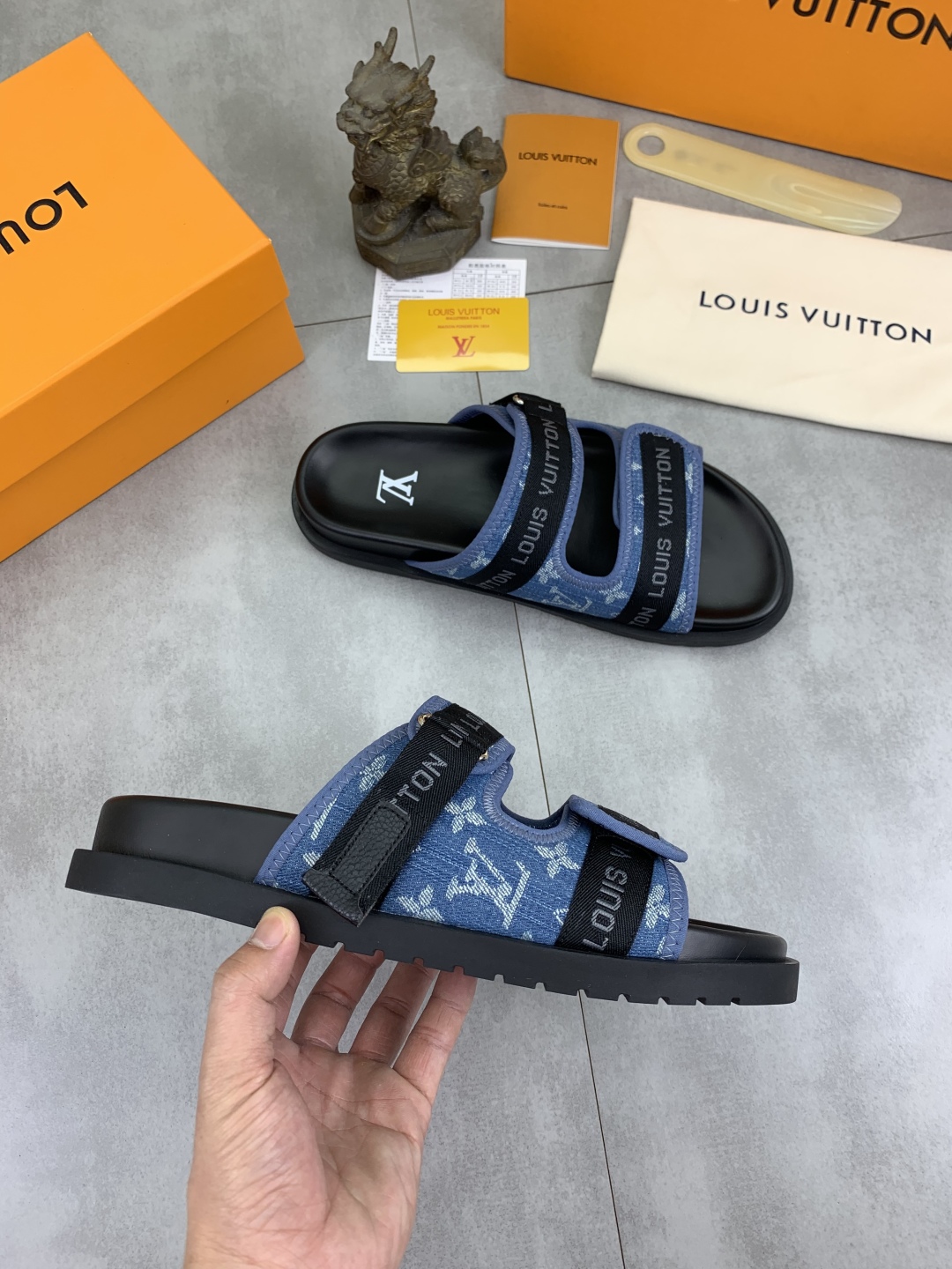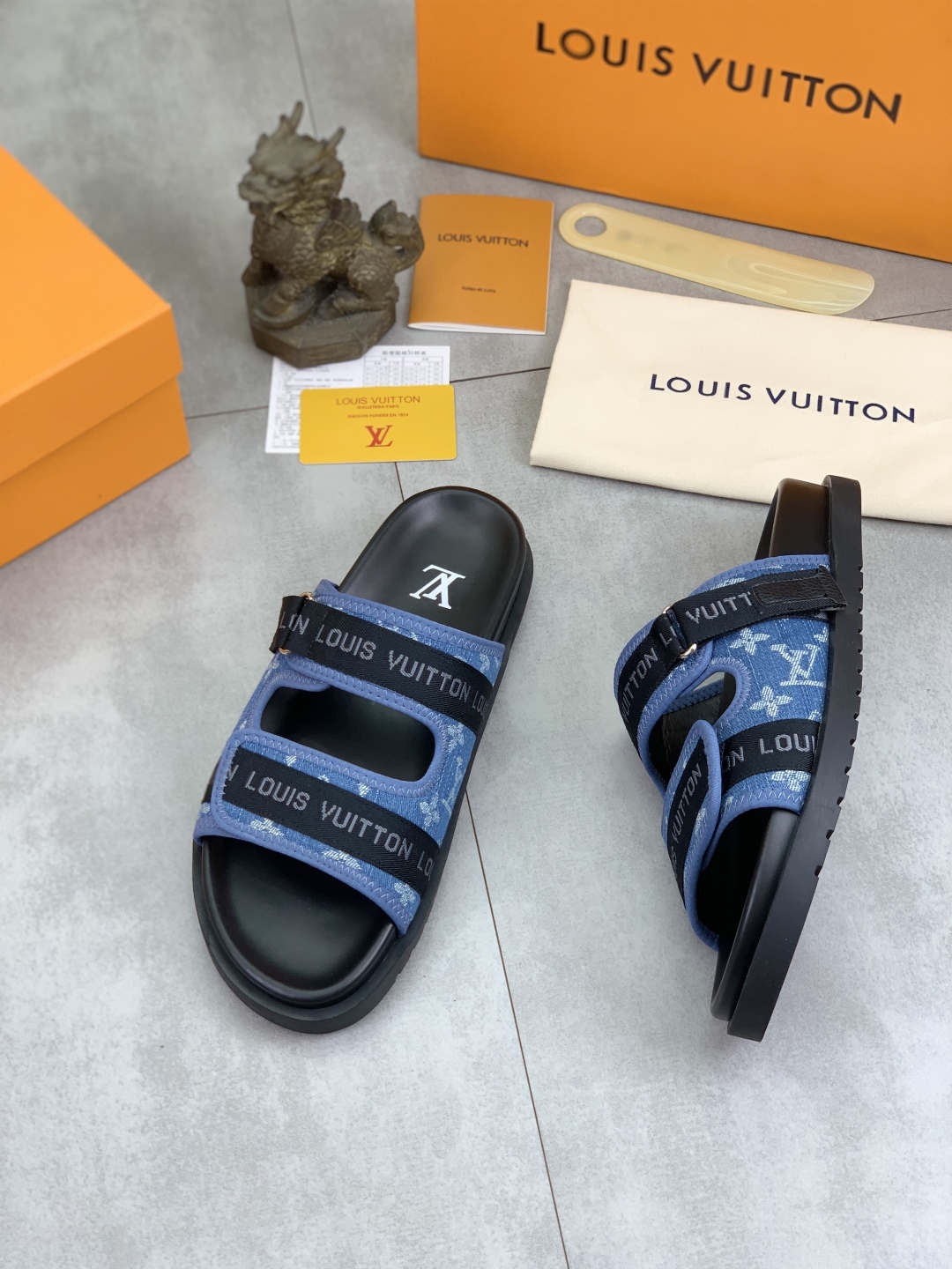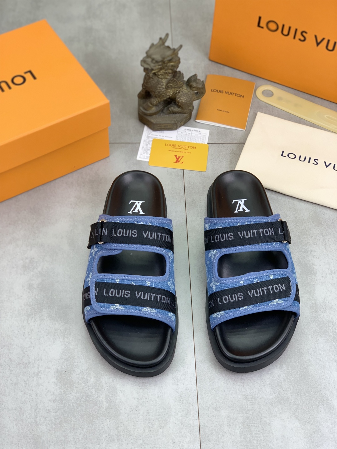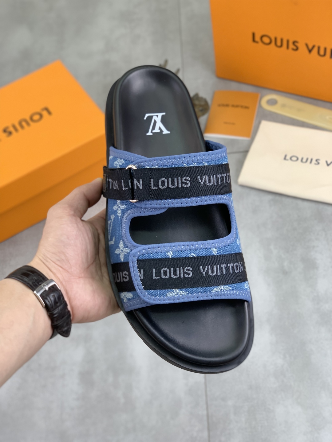 No. 2005???????? Top edition original single quality [LOUIS VUITTON] Official website bestseller Louis Vuitton LV men 's slippers on sale simultaneously! Italian imported original fabric, specially provided by the original factory. Original base size: 39-44 (38, 45, 46 customized). Multiple colors available. High-end packaging