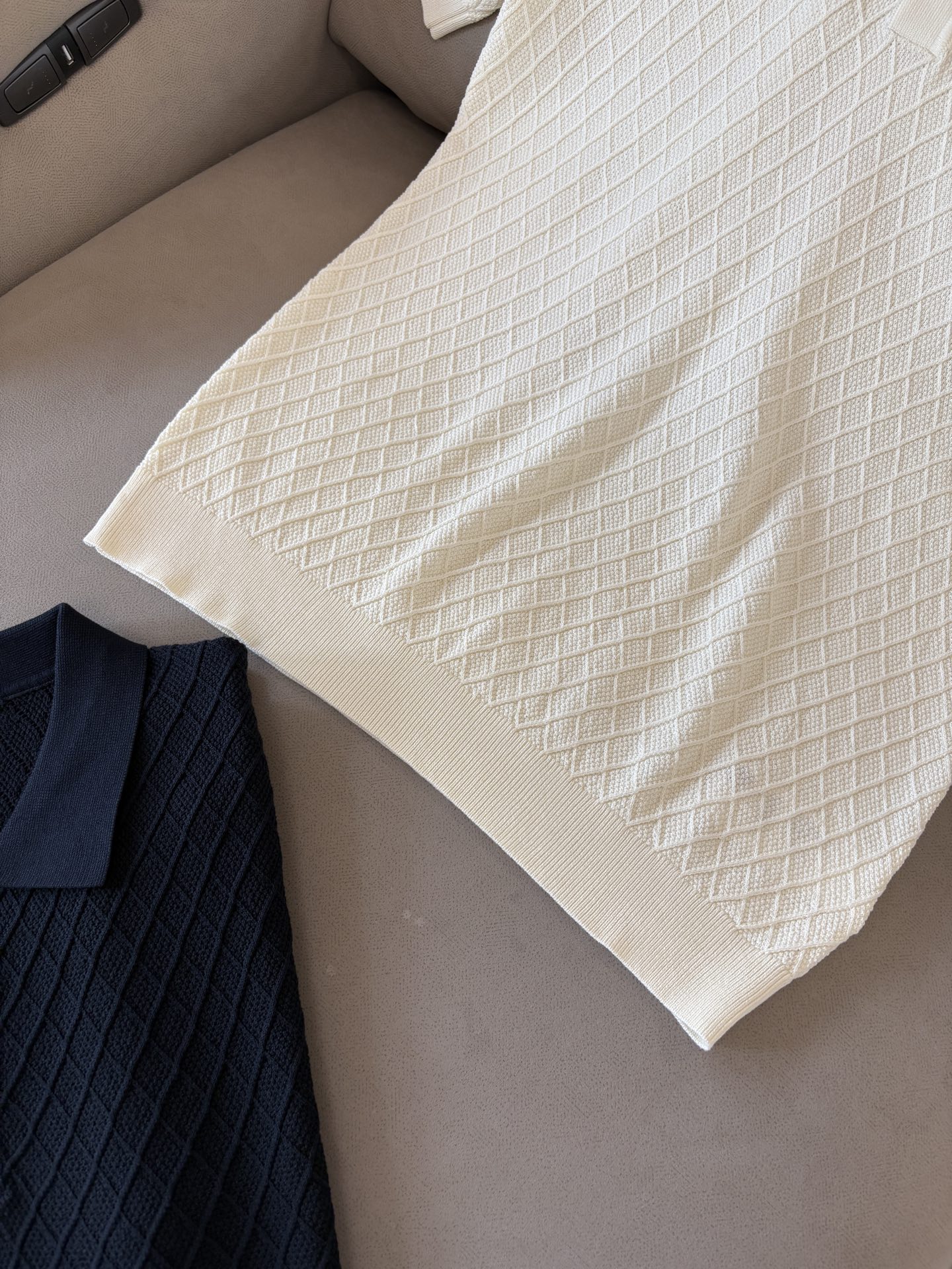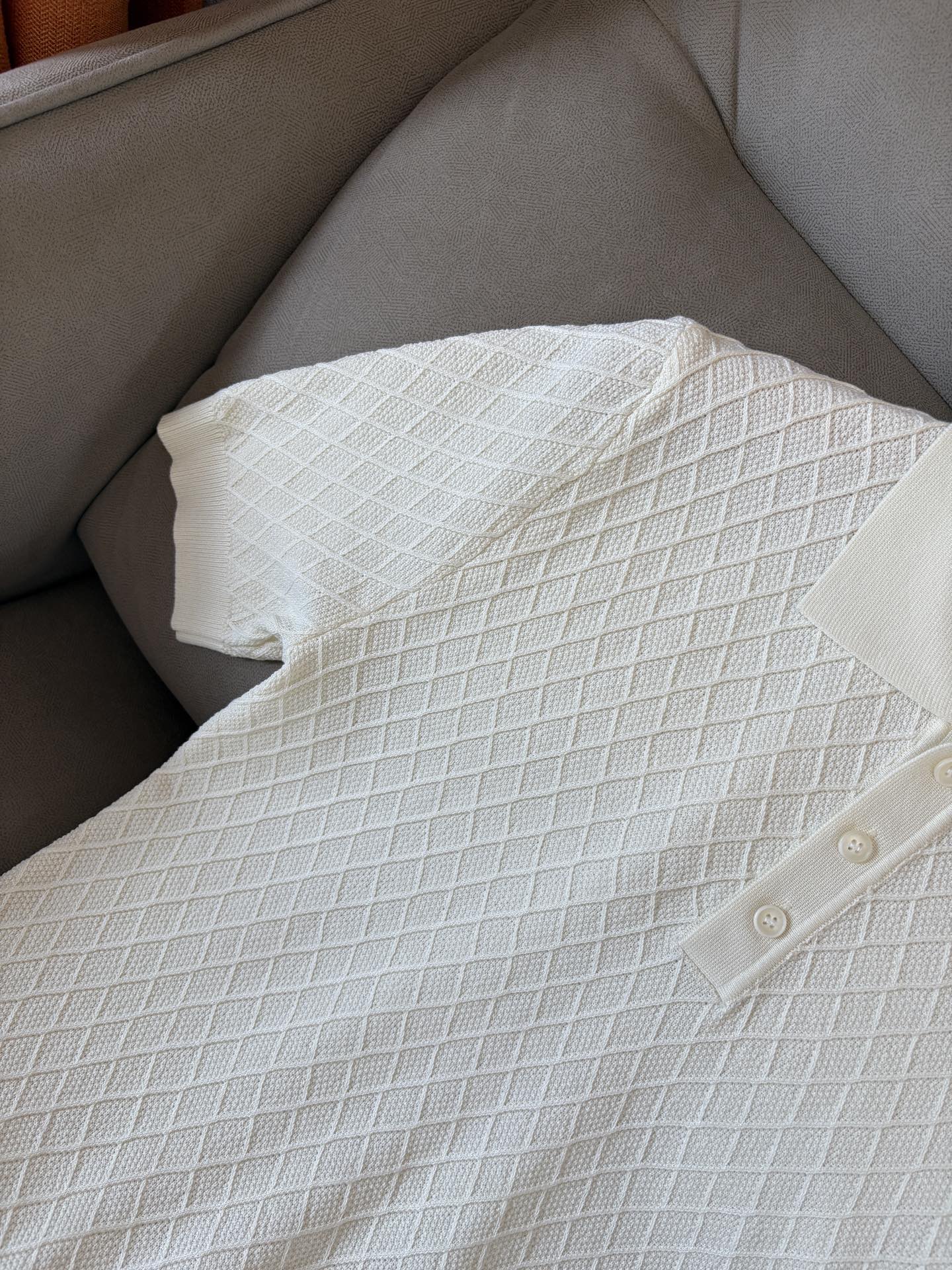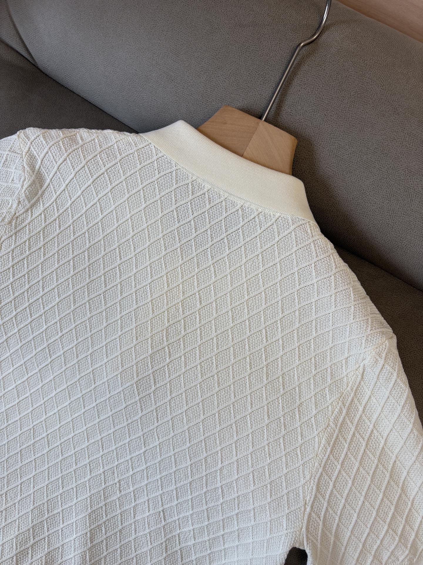?? The "Time King" diamond-shaped jacquard design selects ultra-fine high-quality yarn, containing 20% goat and 80% mulberry silk. The lapel short-sleeved men's collector's edition "Time King" features a luxurious round collar and high-end craftsmanship that touches the skin. ? Craftsmanship heritage: diamond-shaped hollowed-out jacquard The three-dimensional diamond-shaped jacquard, which took several months to carve, weaves the architectural aesthetic texture between the warp and weft. When light and shadow penetrate, the interplay of visible and hidden elements exudes undersaid luxury in every move. ? Premium materials naturally formed: 20% cashmere + 80% mulberry silk Selected from ultra-fine and high-quality yarns, it combines the soft and skin-friendly texture of 20% Inner Mongolia white cashmere and the smooth and drape of 80% mulberry silk. It is as light as nothing yet exudes a natural sense of luxury. Wearing it close to the skin is like being gently caressed by the clouds. ? Classic style: Lapel short-sleeved design The simple lapel Outlines neat lines, and the short-sleeved cut is suitable for various scenarios - layering a suit over a business meeting shows elegance, and wearing it alone in casual times reveals a gentleman's taste. The classic style never fades. ? Perfection in details: A testament to quality Precision turning ensures smooth seams and reinforced bone positions that are resistant to wear and deformation. The thread at the neckline has undergone a water-washing test and remains as crisp as new even after long-term wear. Every detail is a testament to the "time spent". Code number: M-3XL001 001