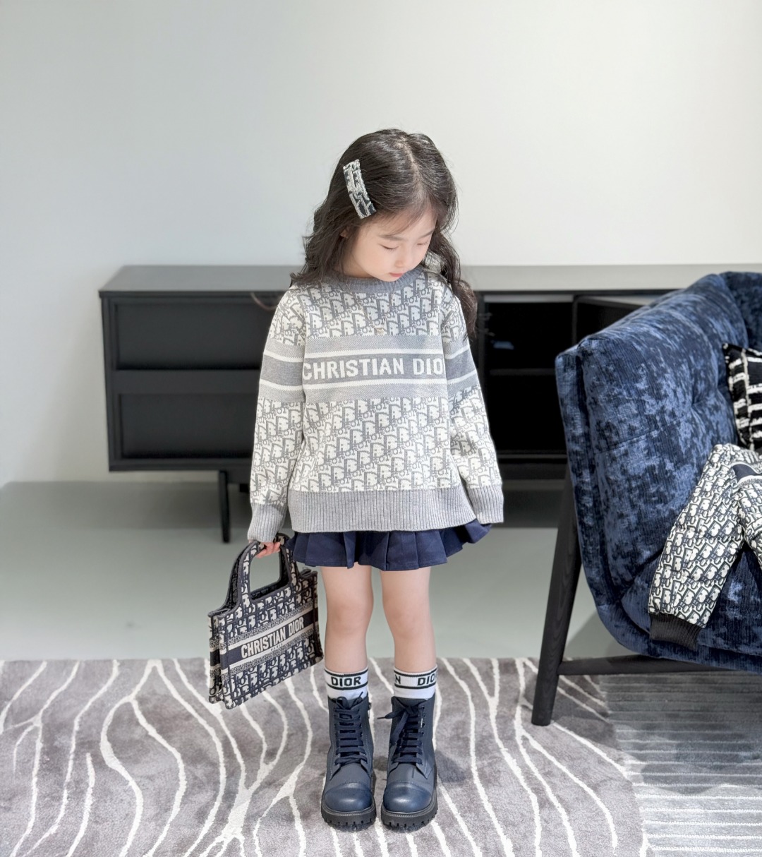 Dior, high-end children's wear, sweaters for boys and girls, classic jacquard wool blend sweater, 16% mercerized wool blend, high-temperature eco-friendly dyeing, with a small amount of nylon and acrylic components added - more resilient and durable. The washing process of the ready-to-wear clothes makes the hand feel softer, more comfortable, no worries when worn next to the skin. Sweater thickness: 480 grams, thickness: Cold spring innerwear, late spring single wear, unisex, essential mixed and matched items for autumn and winter. Size: 100/110/120/130/140/150/160/165 cm