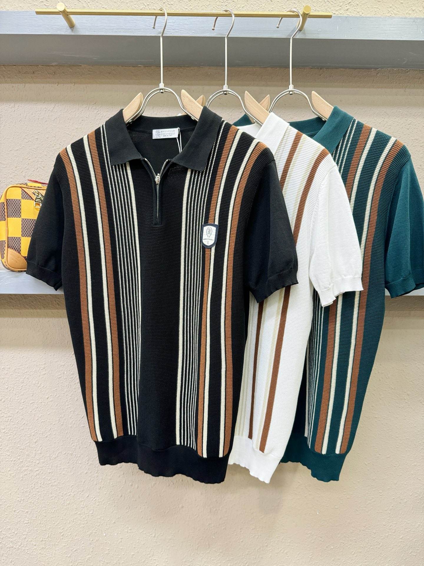 BC Bruti's new Spring/Summer 2025 knitted short-sleeved shirt, made of imported knitted fabric, has a soft touch. Top-quality imported private goods, fashionable design and trendy short-sleeved knitted sweater, without doubt luxurious quality. The wearing effect is excellent. The same style as the official website of luxury! Size: M-4XL