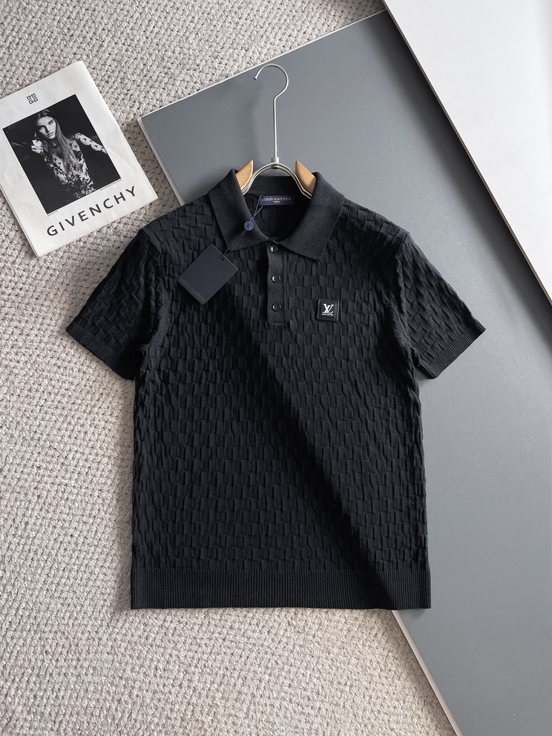 LV's new Spring/Summer 2025 collection features a simple and versatile design with lettered, top-quality imported private knitwear polo short-sleeved shirt. This high-end heavy jacquard short-sleeved knitted sweater is fashionable yet luxurious in the counter style. The quality is beyond doubt and the wearing effect is excellent. The same size as the official website's counter is M-xxxl