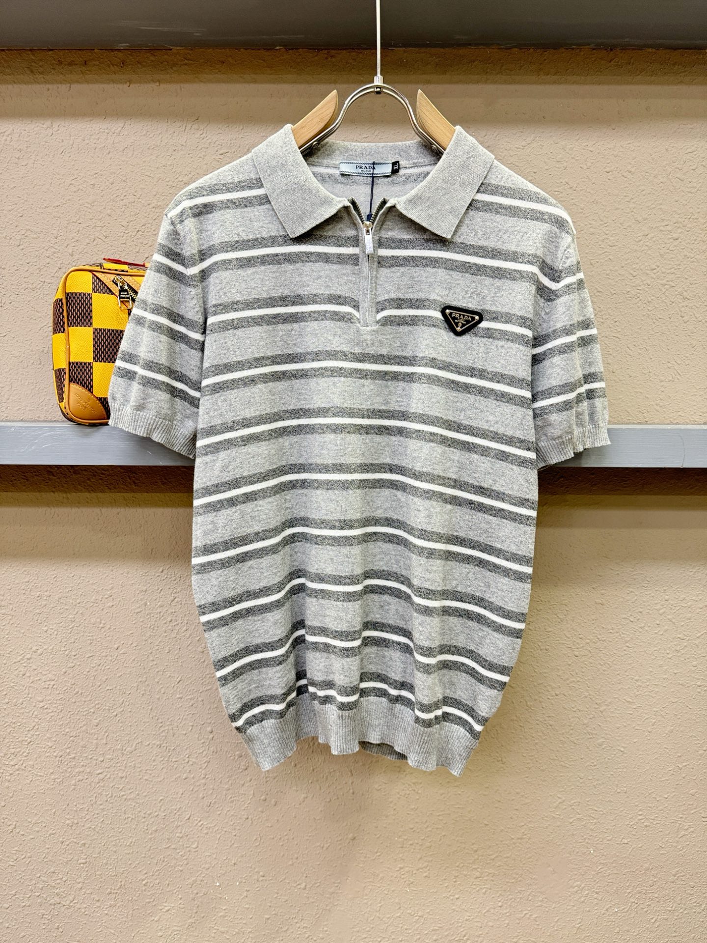 PRADA's Spring/Summer 2025 new knitted short-sleeved shirt, made of imported knitted fabric, has a soft touch. Top-quality imported private goods, fashionable design and trendy short-sleeved knitted sweater, without doubt luxurious quality. The wearing effect is excellent. The same style as the official website of luxury! Size: M-4XL