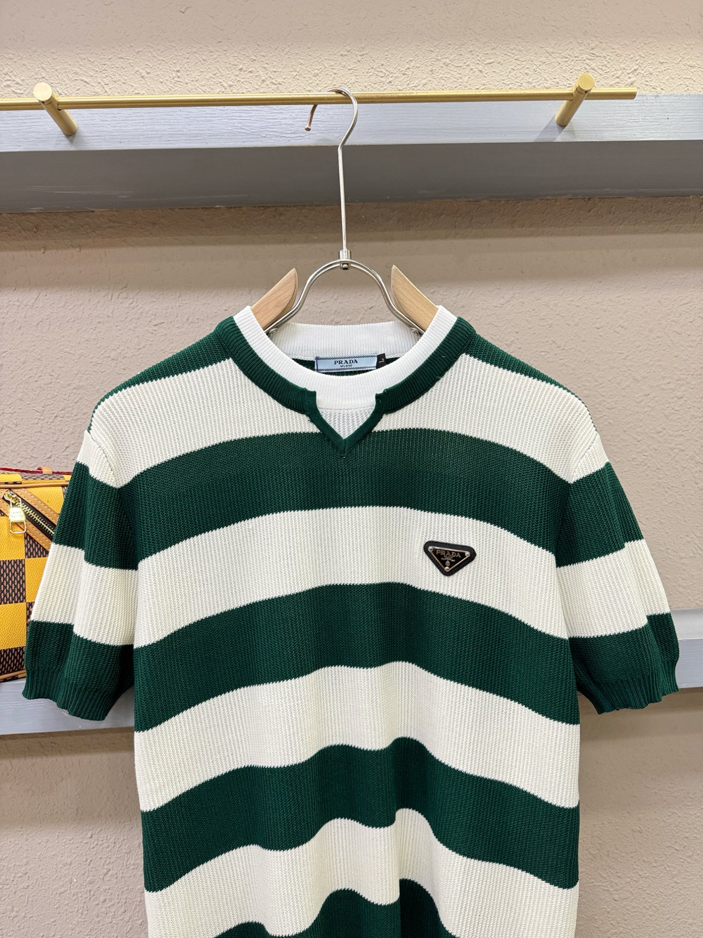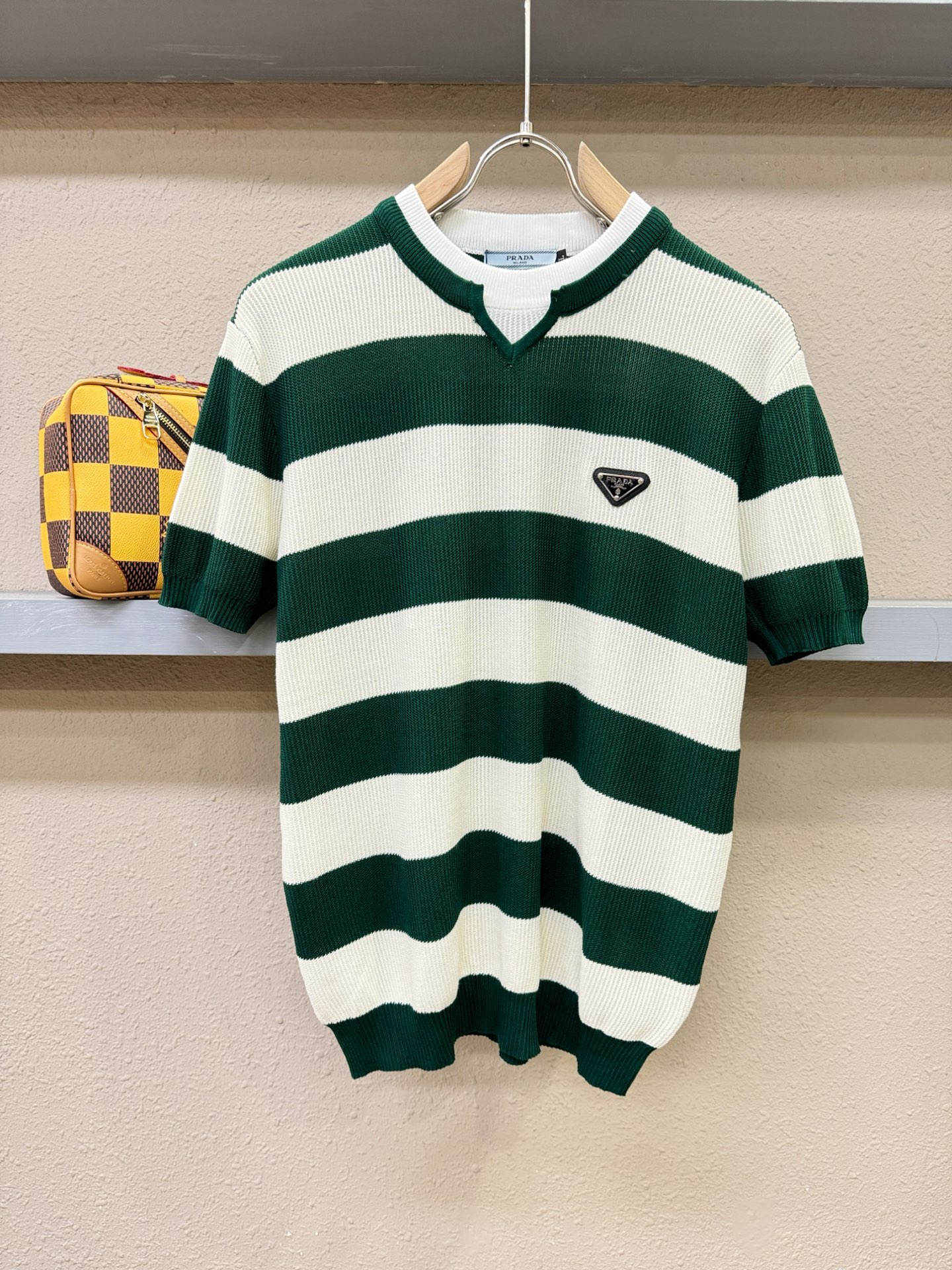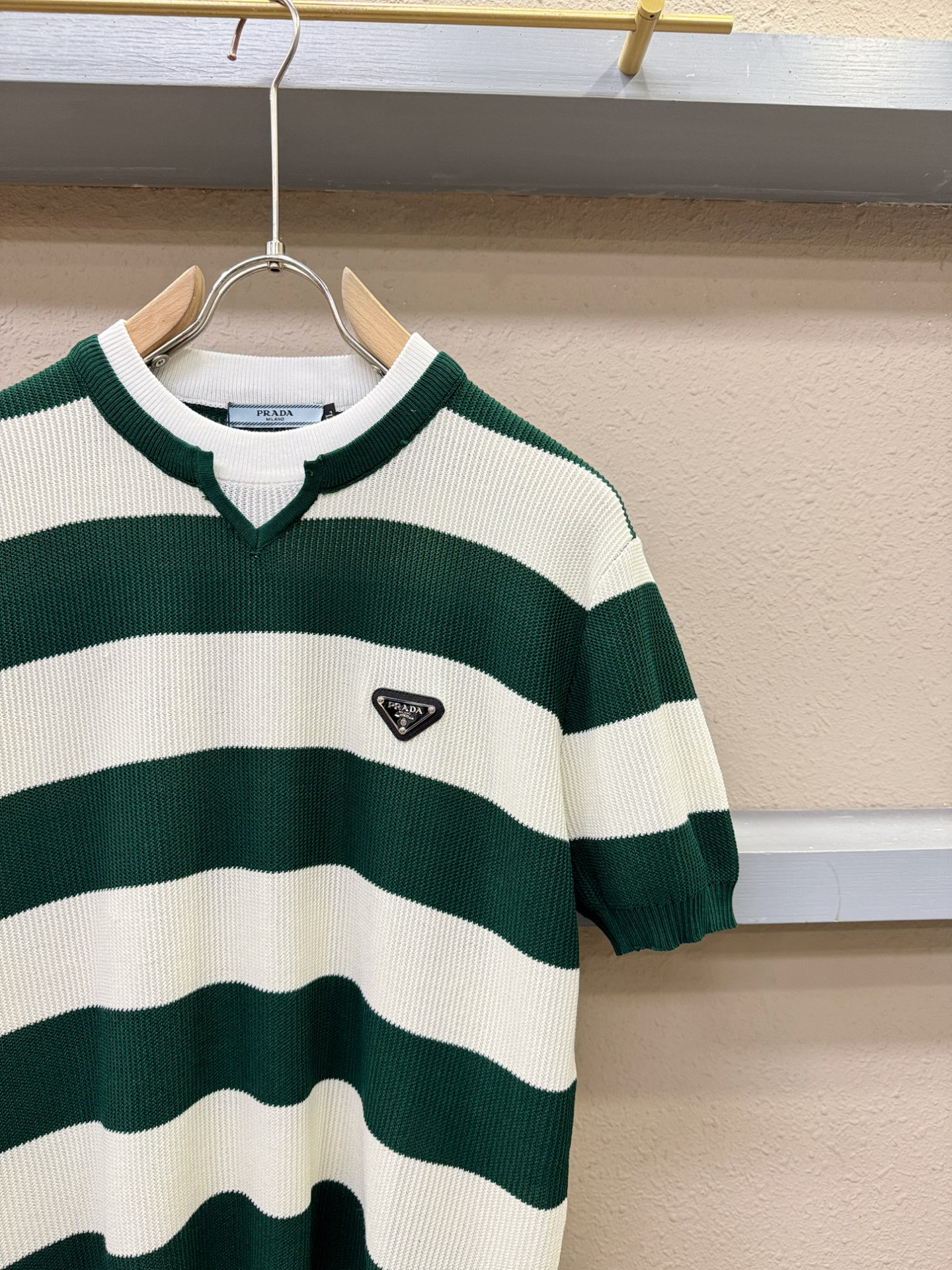 PRADA's Spring/Summer 2025 new knitted short-sleeved shirt, made of imported knitted fabric, has a soft touch. Top-quality imported private goods, fashionable design and trendy short-sleeved knitted sweater, without doubt luxurious quality. The wearing effect is excellent. The same style as the official website of luxury! Size: M-4XL