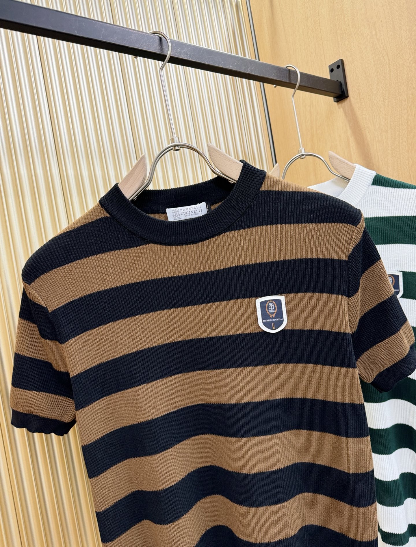BC Bruti's new Spring/Summer 2025 knitted short-sleeved shirt, made of imported knitted fabric, has a soft touch. Top-quality imported private goods, fashionable design and trendy short-sleeved knitted sweater, without doubt luxurious quality. The wearing effect is excellent. The same style as the official website of luxury! Size: M-4XL